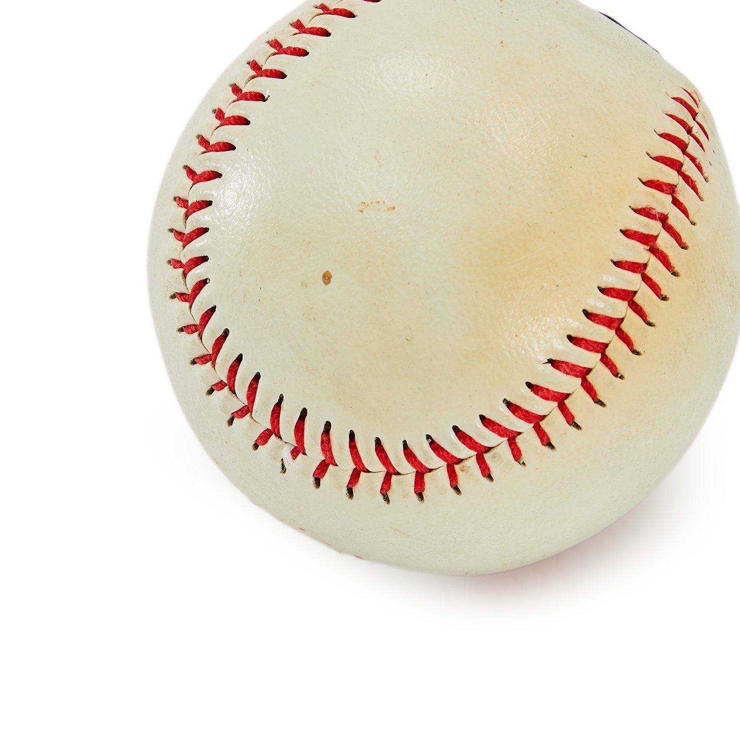 Details: Classic baseball with red threading and mild wear Dimensions: 3" H x 3" W x 3" D
