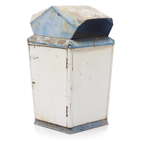 Details: Blue Top, White, Metal, Trash Can, 1960's/70'sDimensions: 48" H x 24" W x 25" D