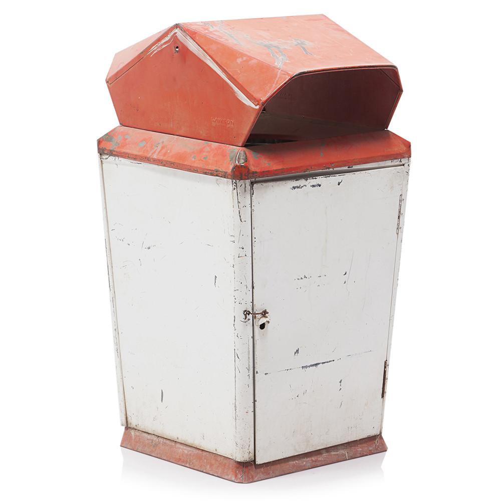 Details: Metal, White, Red Top, TrashcanDimensions: 48" H x 24" W x 25" D
