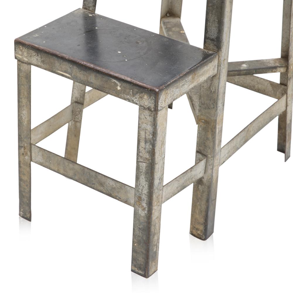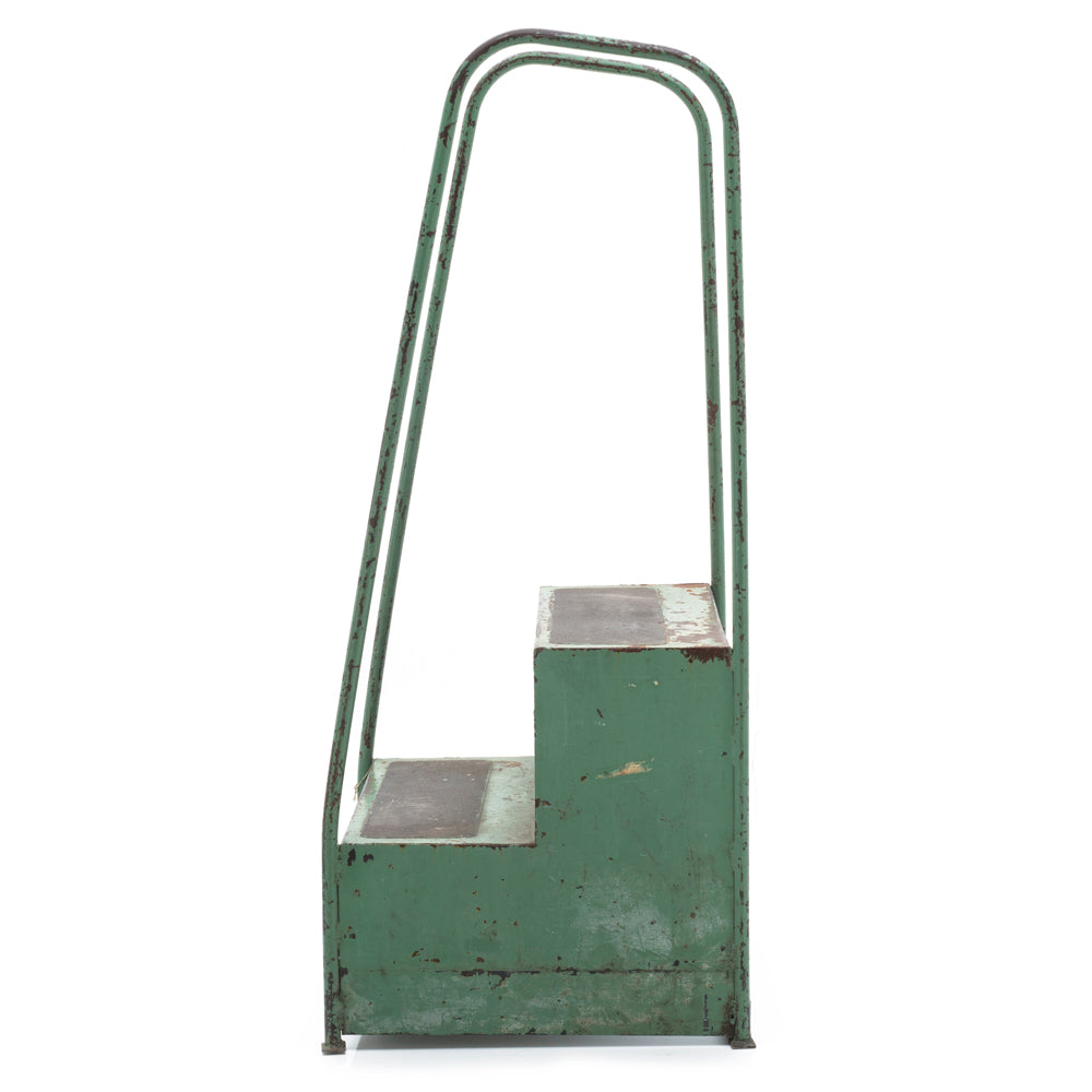 Details: Green rustic metal step ladder. Dimensions: 52" H x 22" W x 23" D