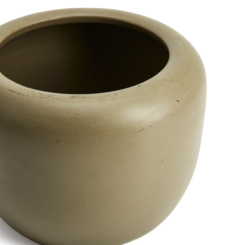 Details: Olive green/pebble color Case Study planter Dimensions: 12" High x 11" Diameter