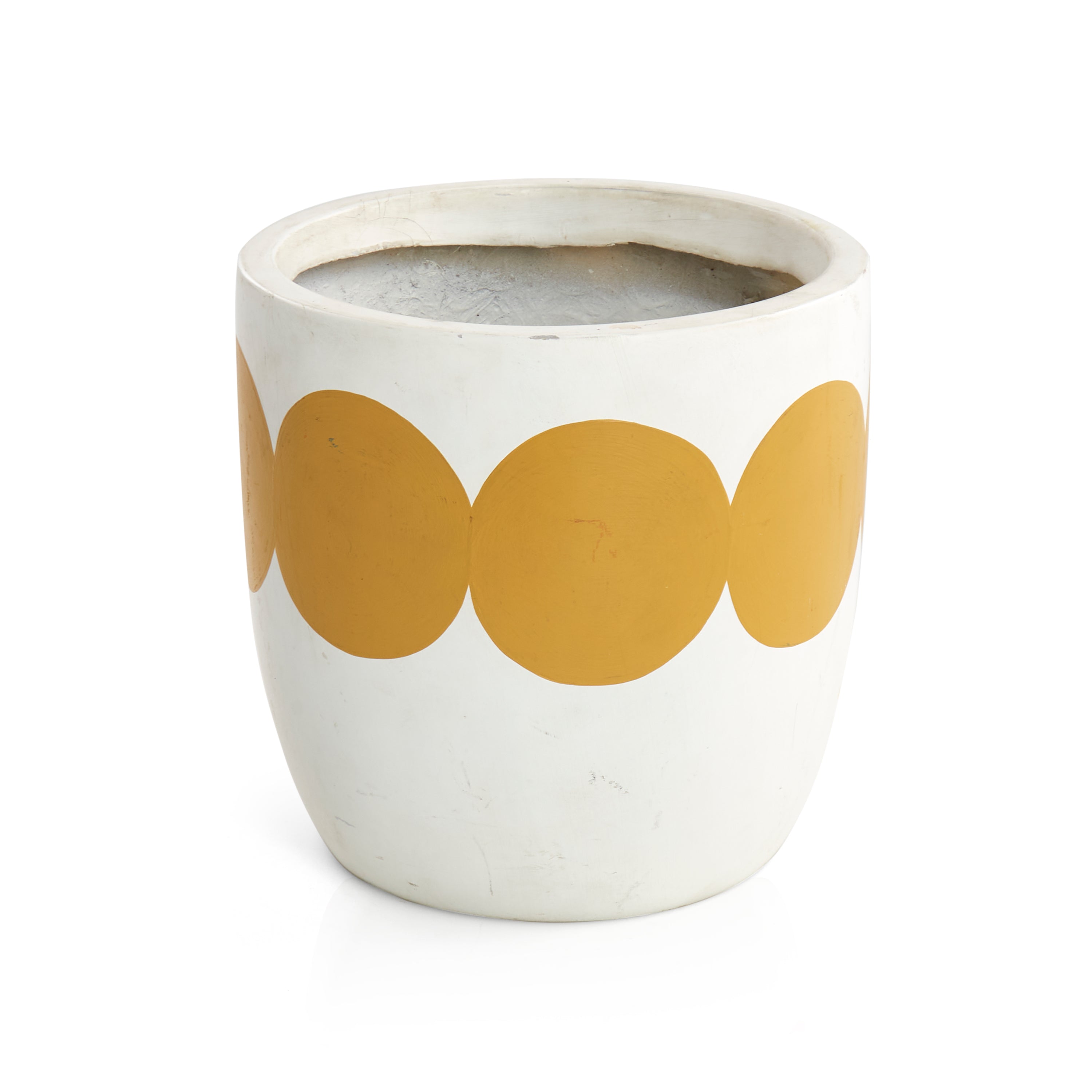 Details: White planter with a yellow circle ring detail. Dimensions: 7.5" H x 7.5" W x 7.5" D