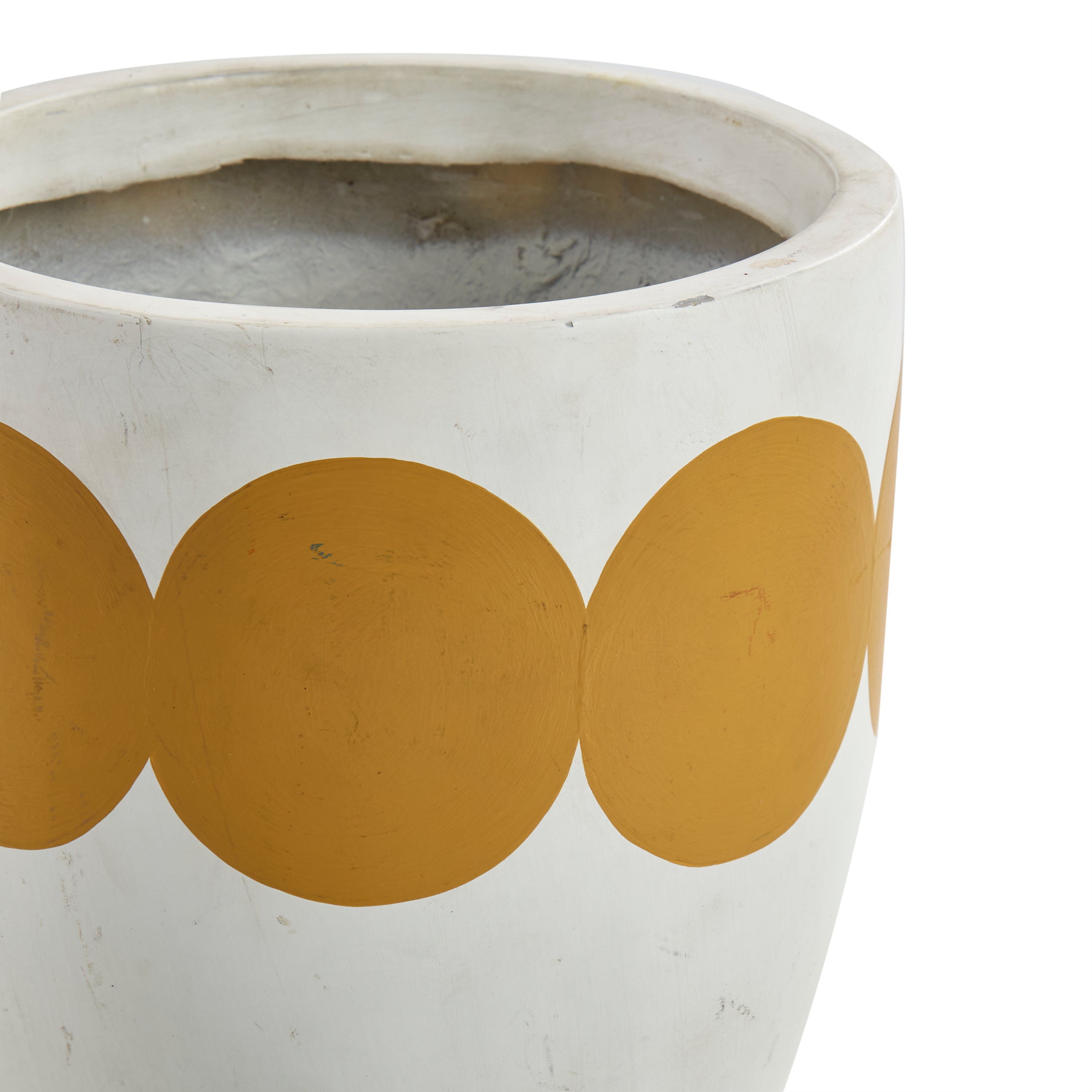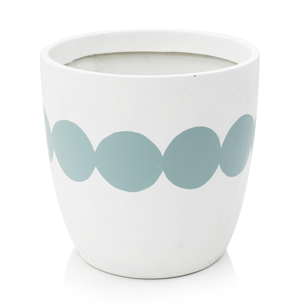 Details: White planter with a blue circle ring detail Dimensions: 15.5" H x 15.5" W x 15.5" D