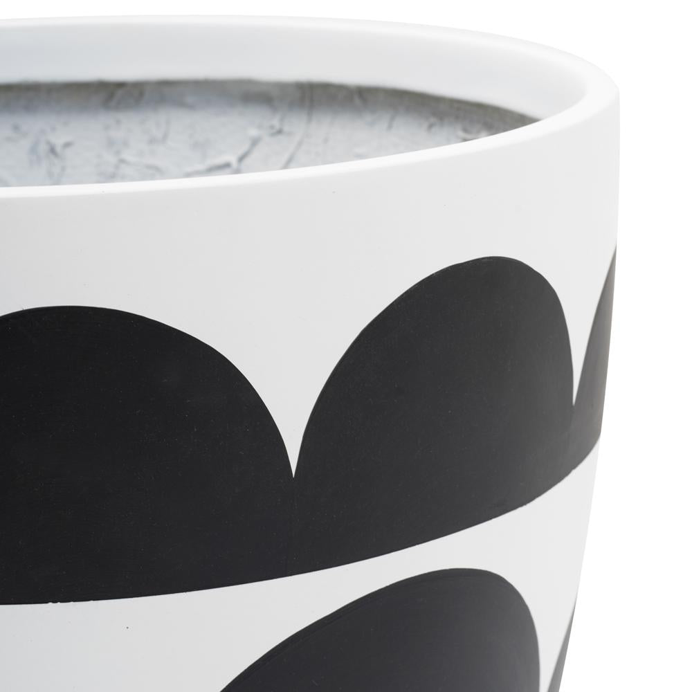 Details: White planter with black cloud striped detail Dimensions: 13" H x 13.5" W x 13.5" D