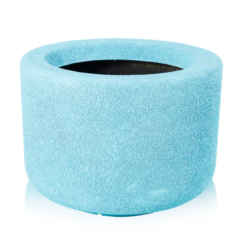 Details: Large aqua-blue fiberglass planter Dimensions: 18" H x 24" W x 24" D