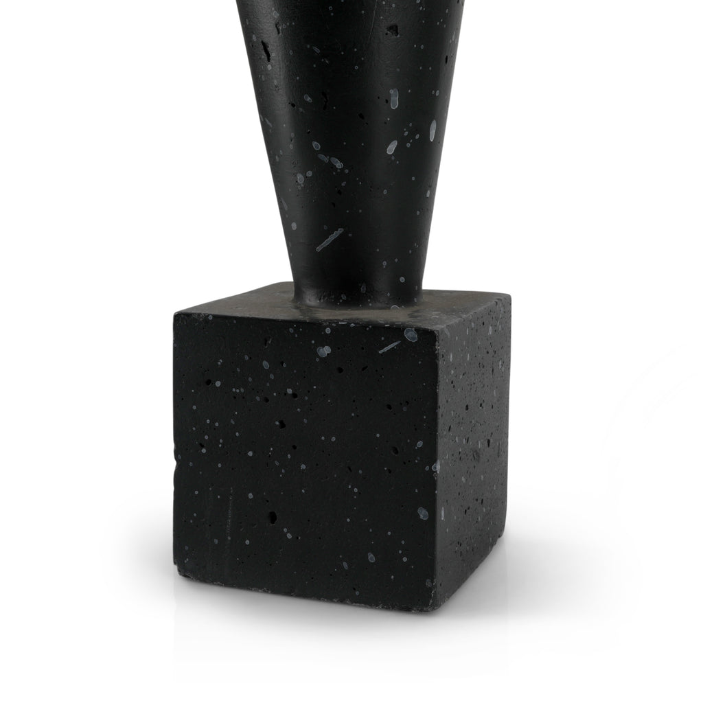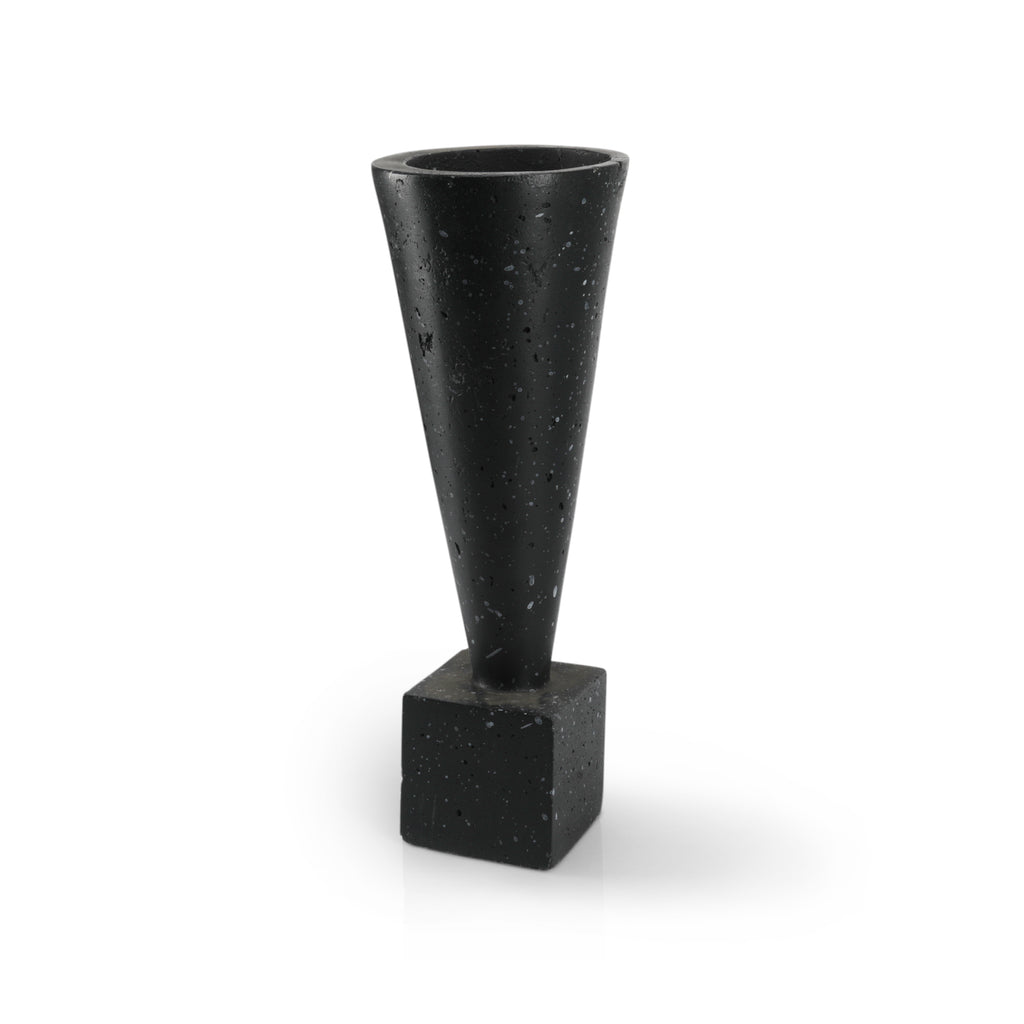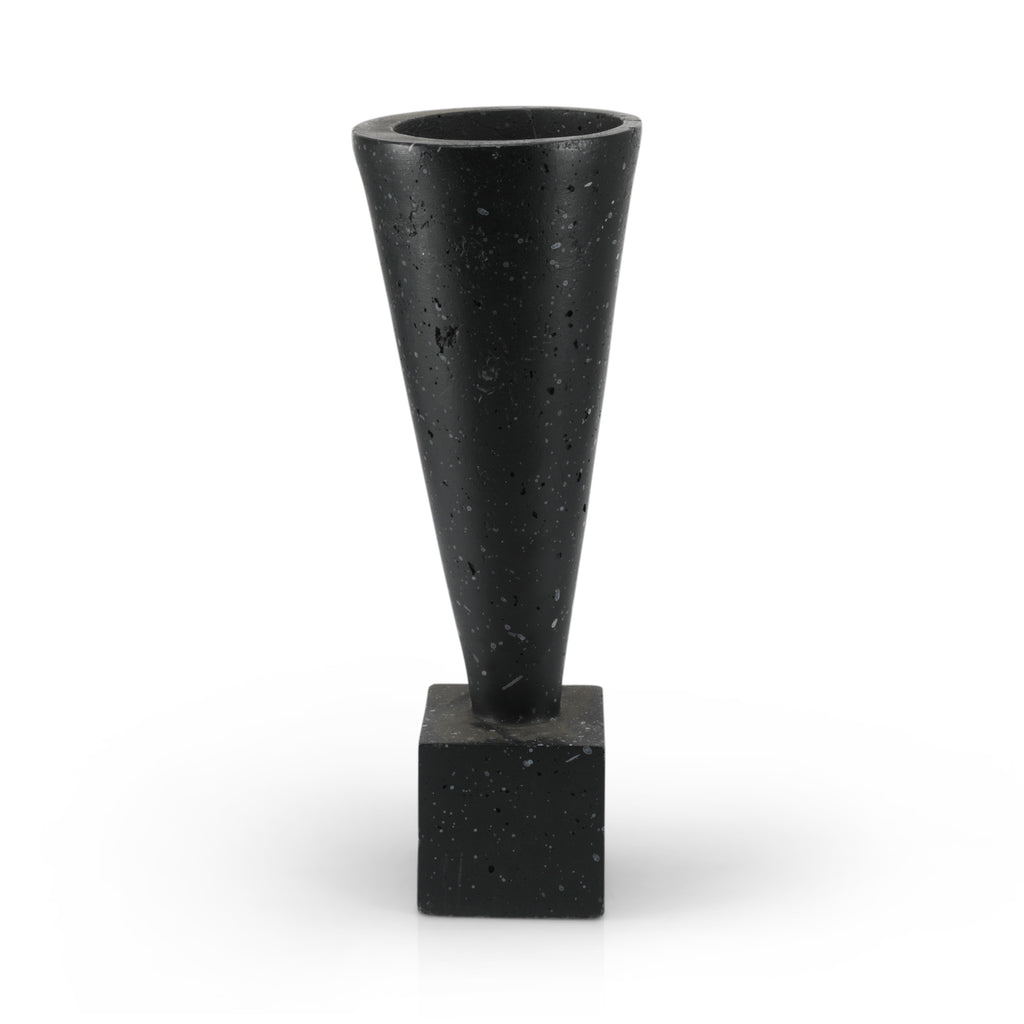 Details: Black ceramic cube planter with gray streaks and grass. Dimensions: 9" H x 4" W x 4" D