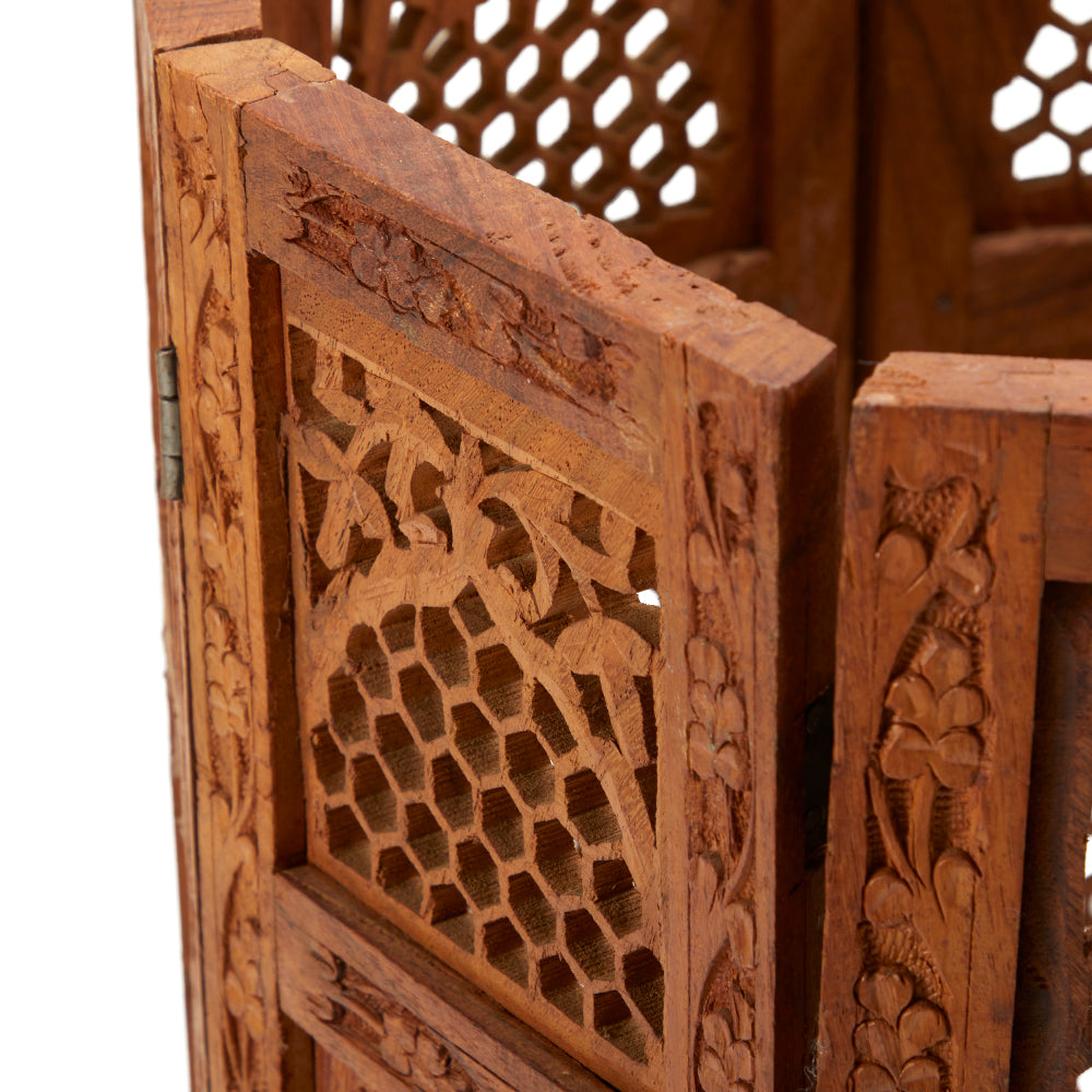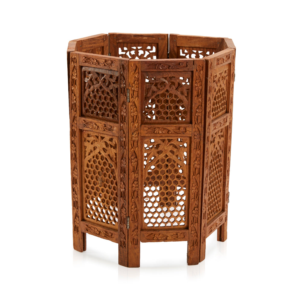 Details: Miniature wooden screen; can be used as end table stand or planter decoration. Table top screen opens up.