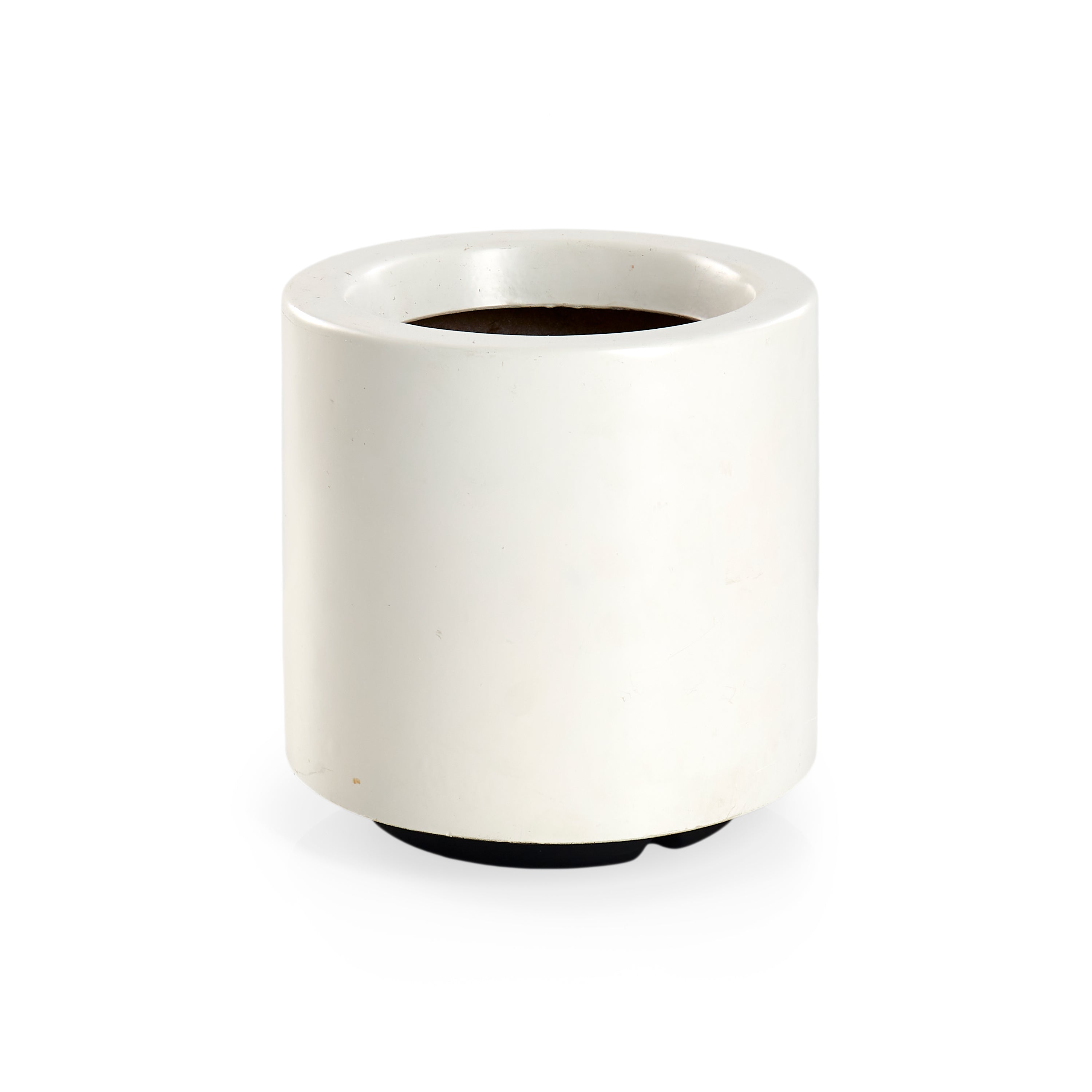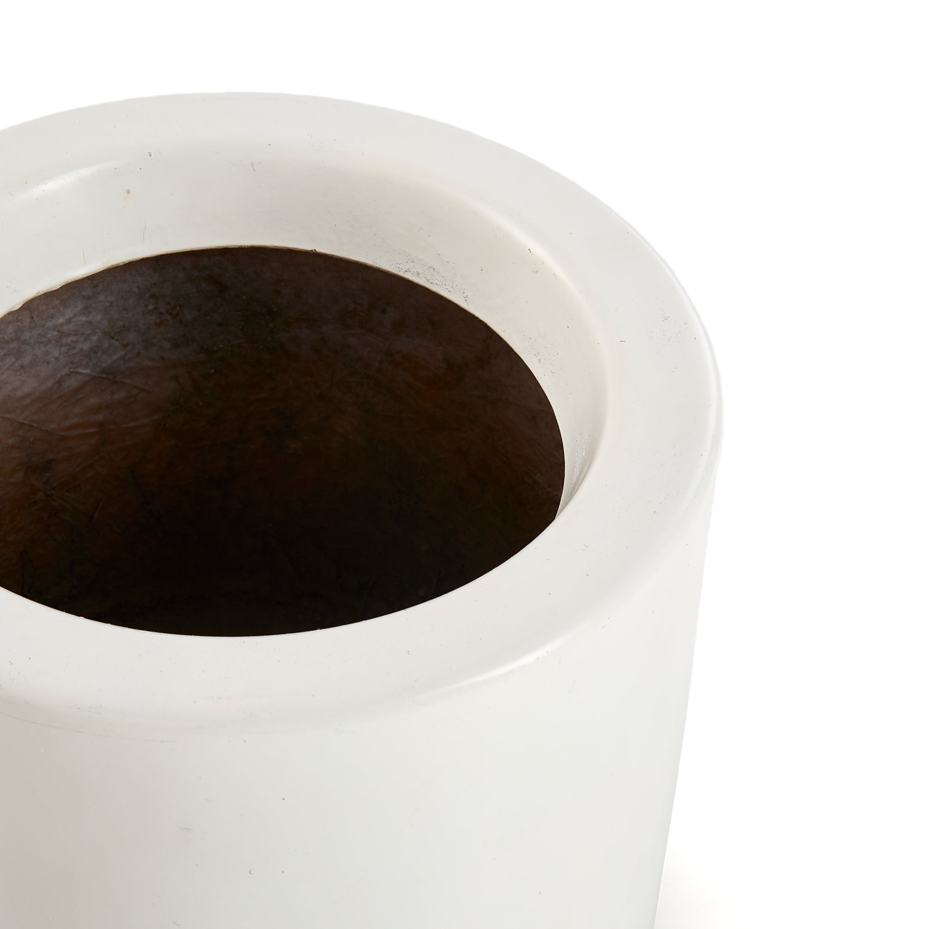 Details: White planter pot with dark interior and black base Dimensions: 10" H x 9" D