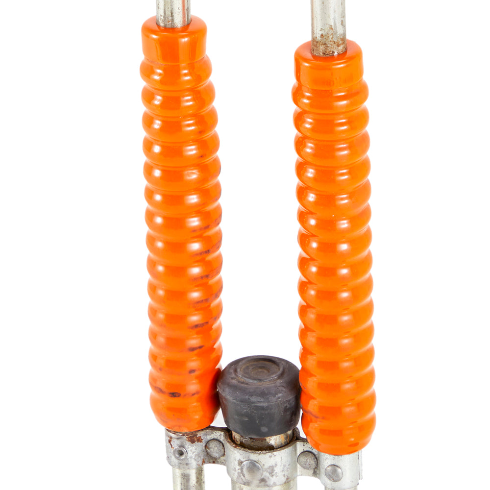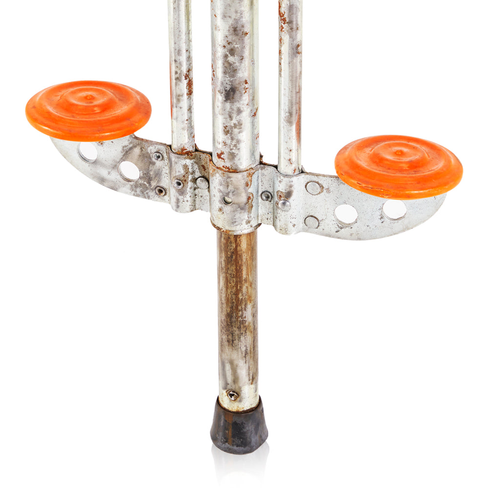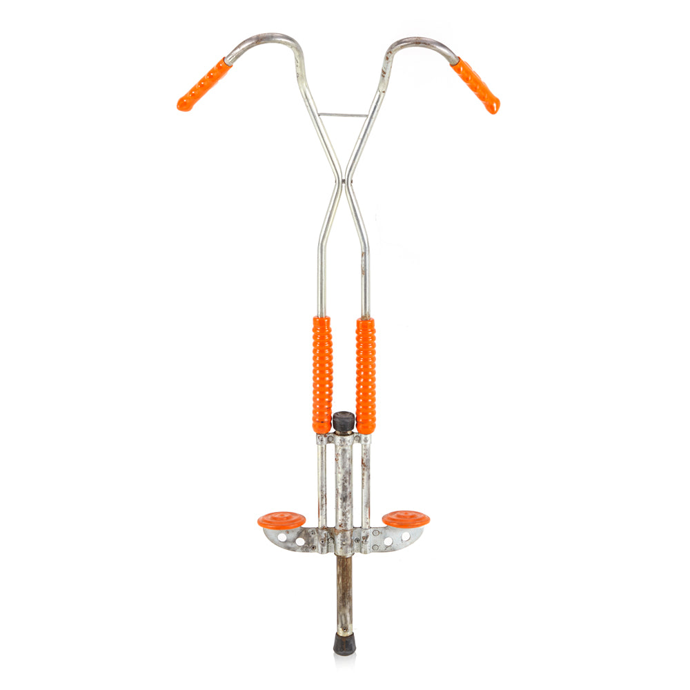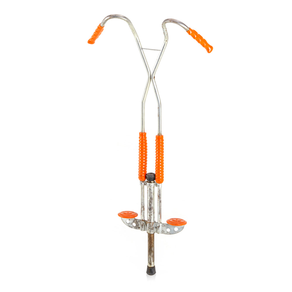 Details: Metal pogo stick with orange handle bars Dimensions: 45" H x 20" H x 3" D Quantity: 1