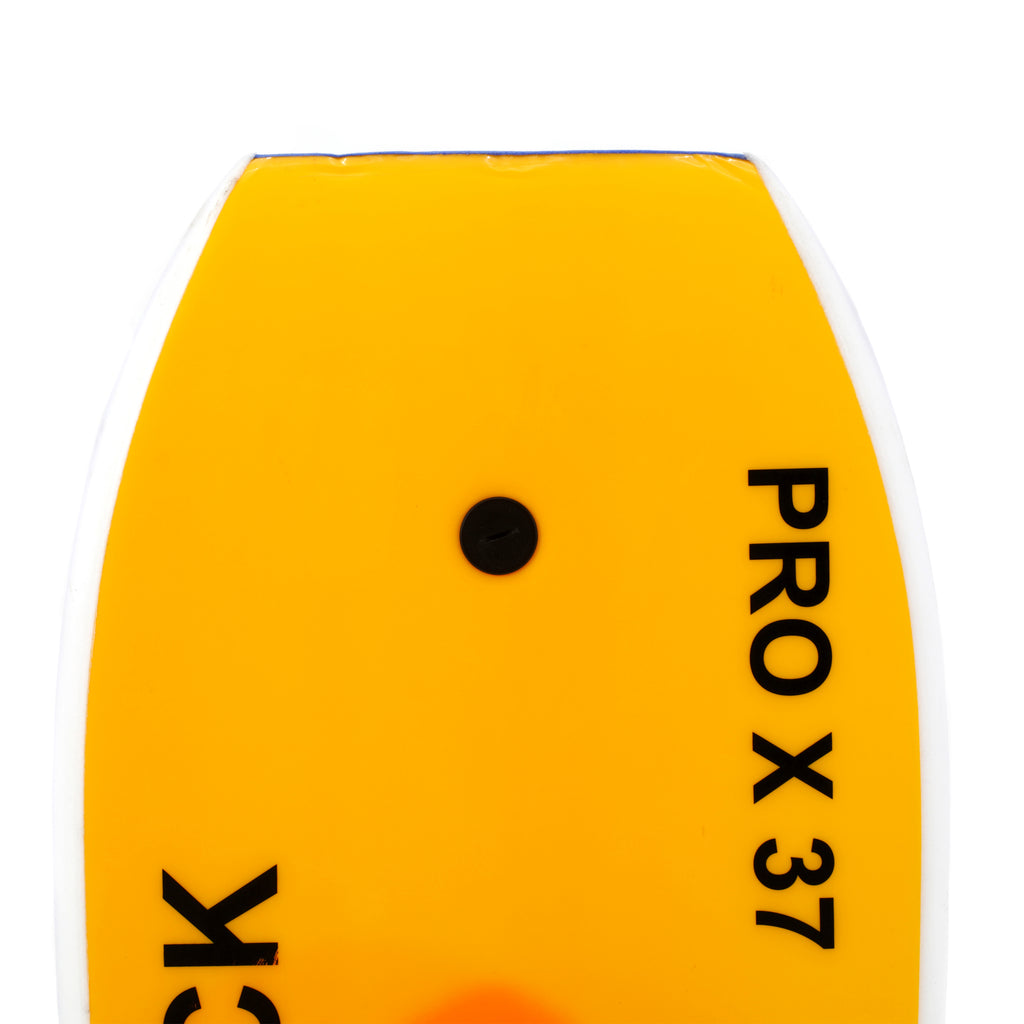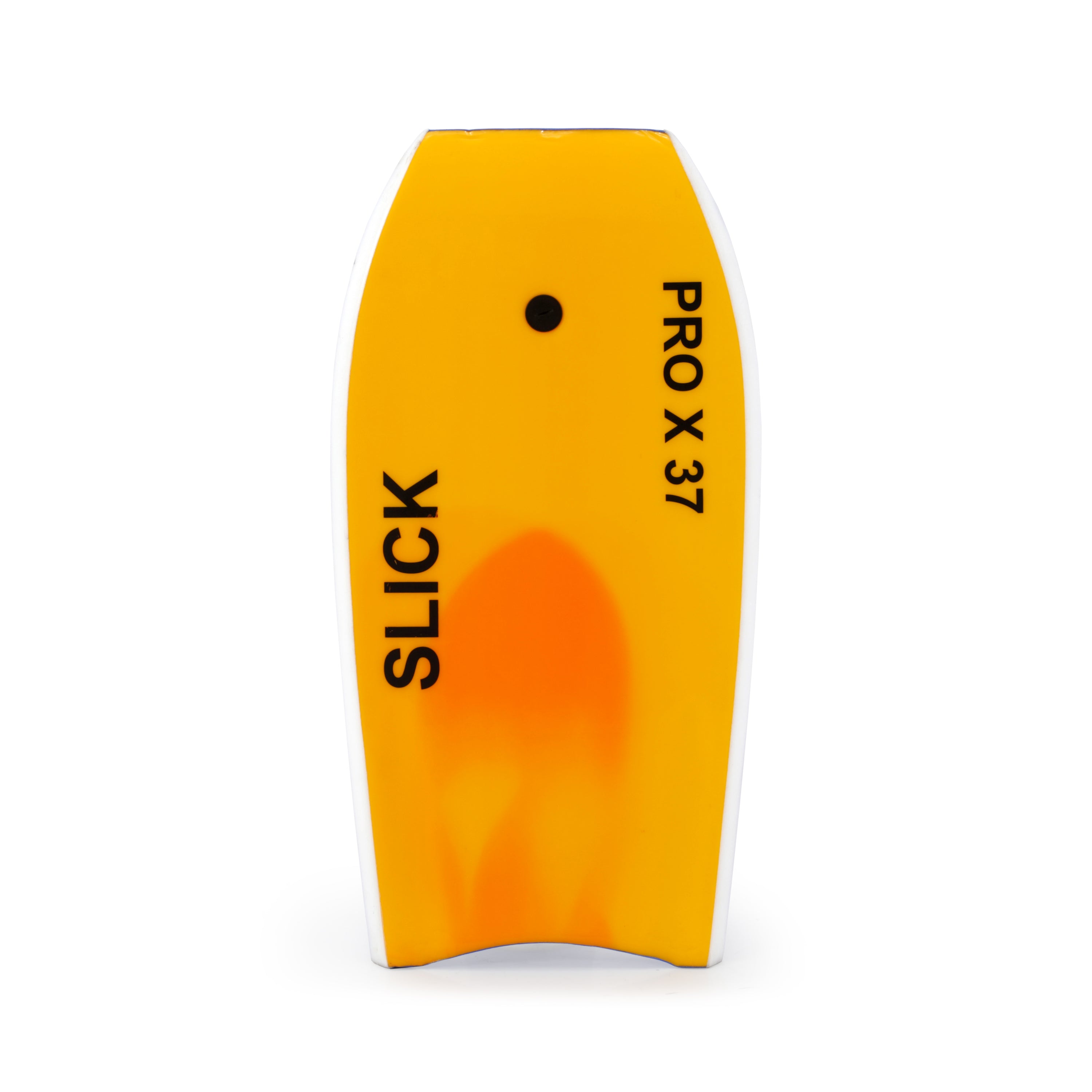Details: Boogie board with blue foam top and slick yellow bottom. Dimensions: 37" H x 19" W x 2" D