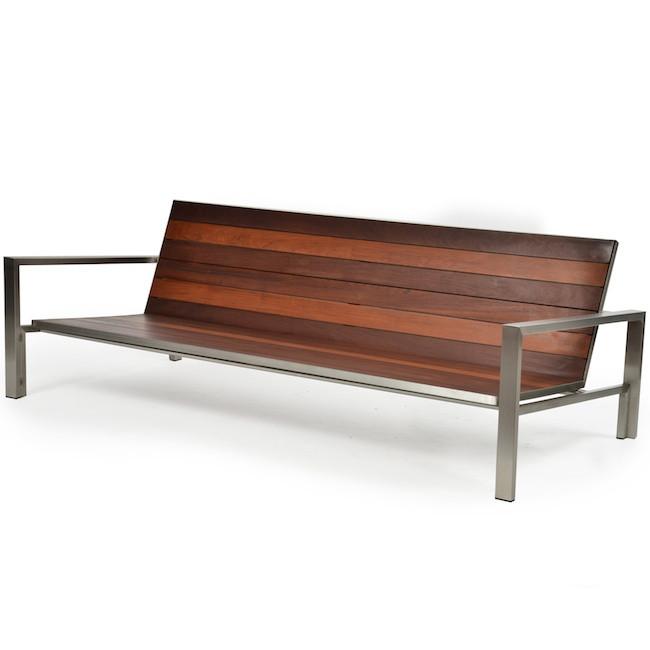 Details: Stainless Steel Couch, Outdoor, Walnut, Teak Dimensions: 25.5" H x 78" W x 36" D