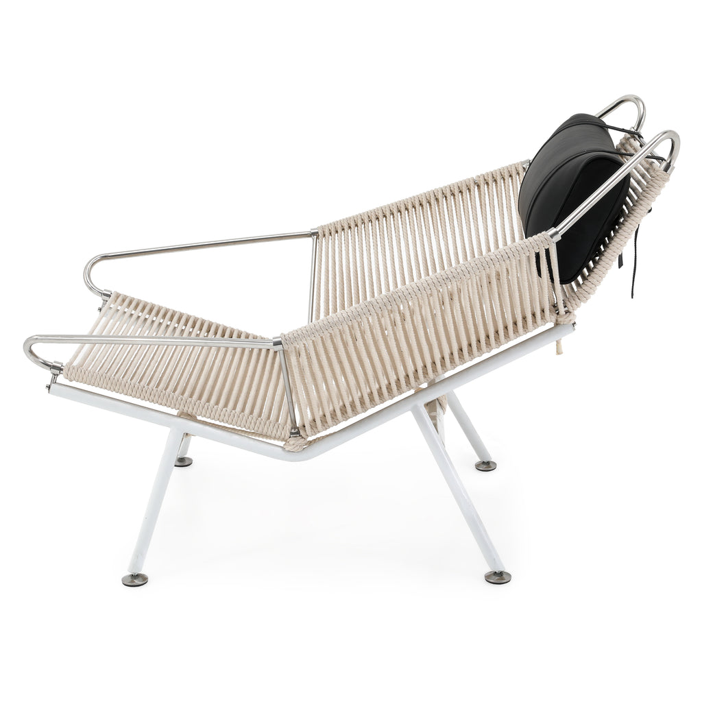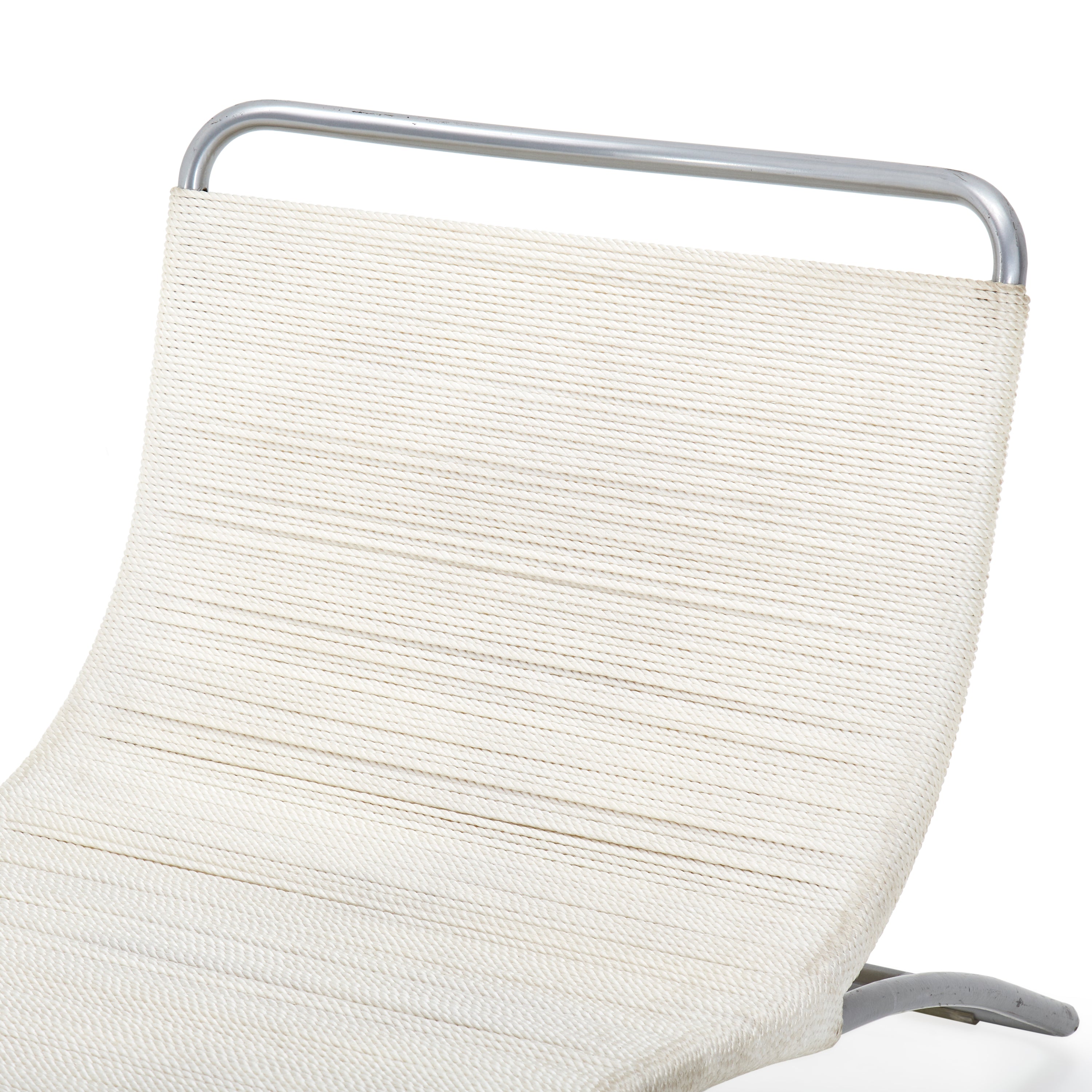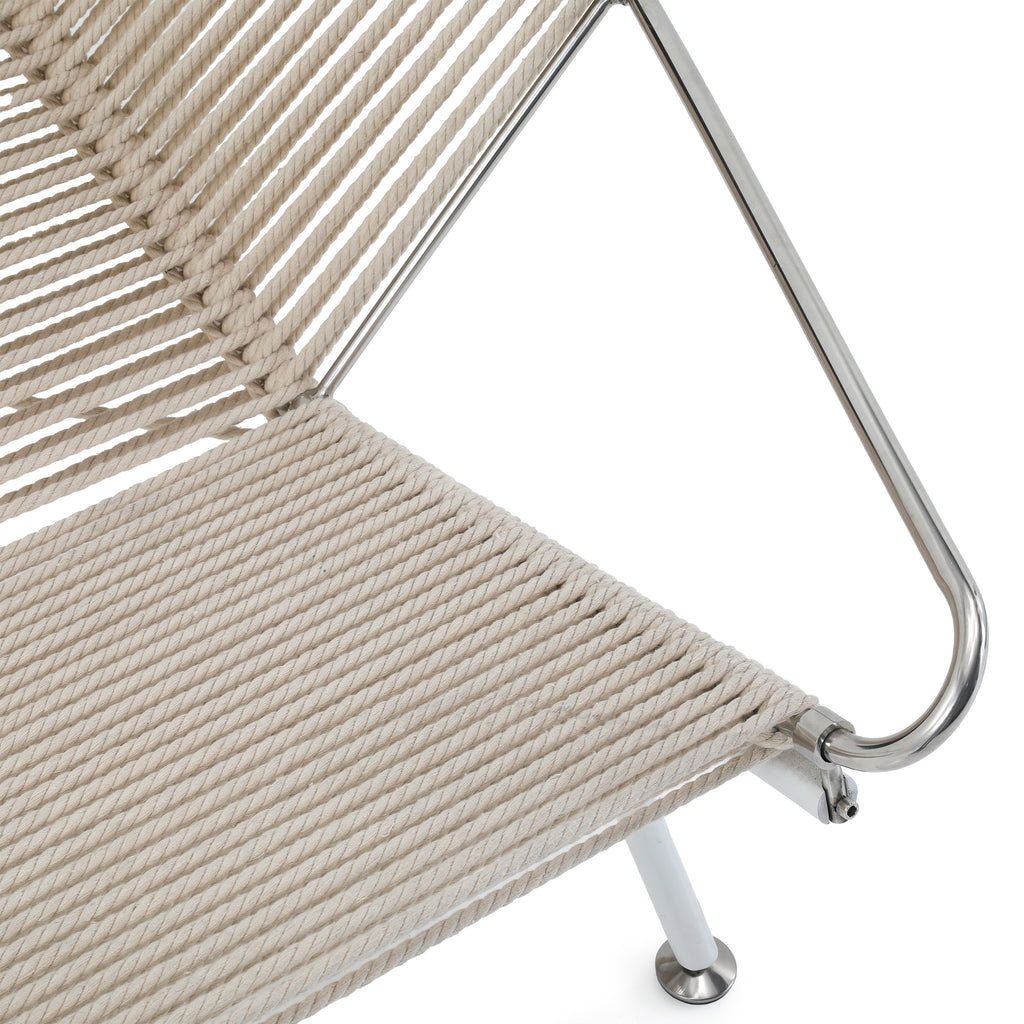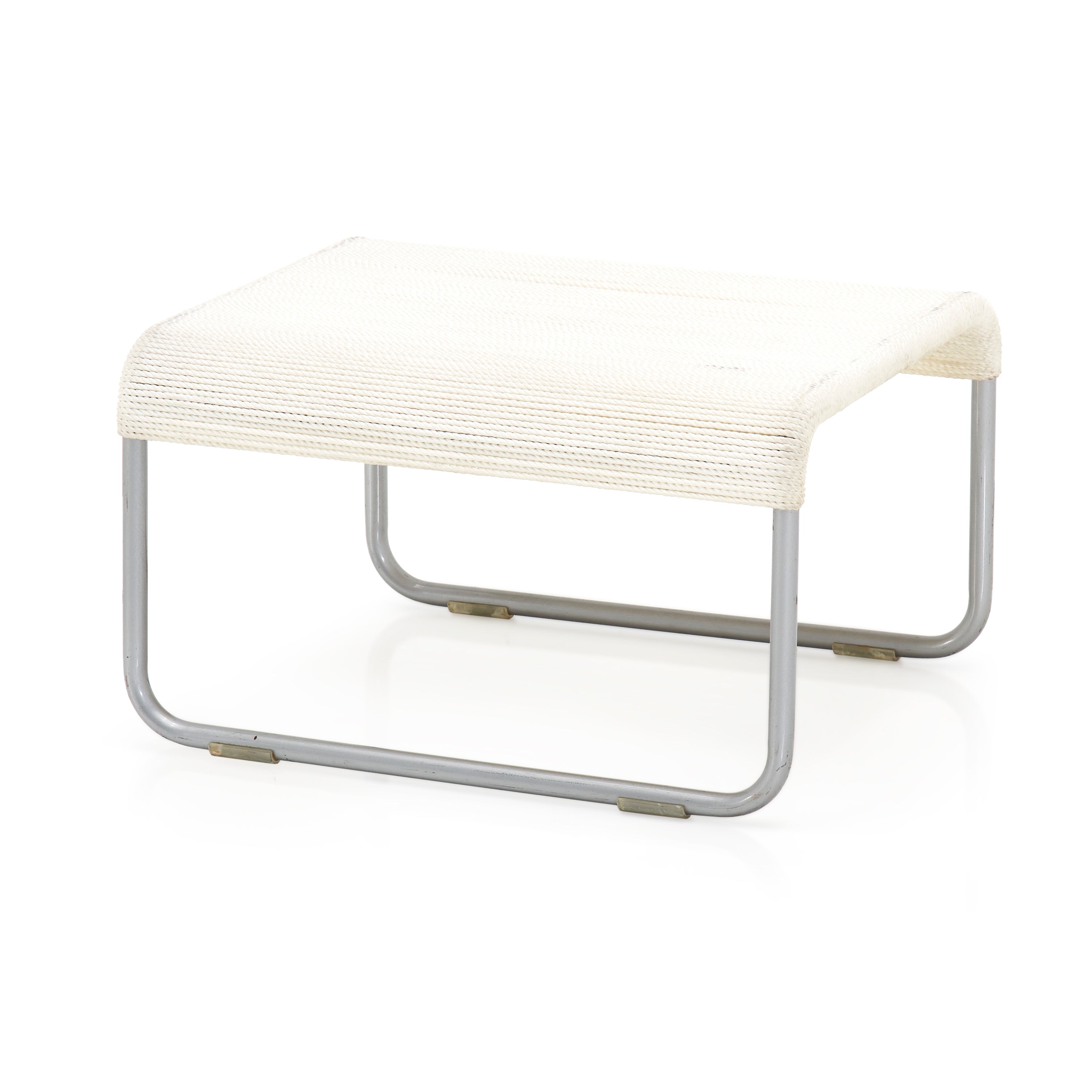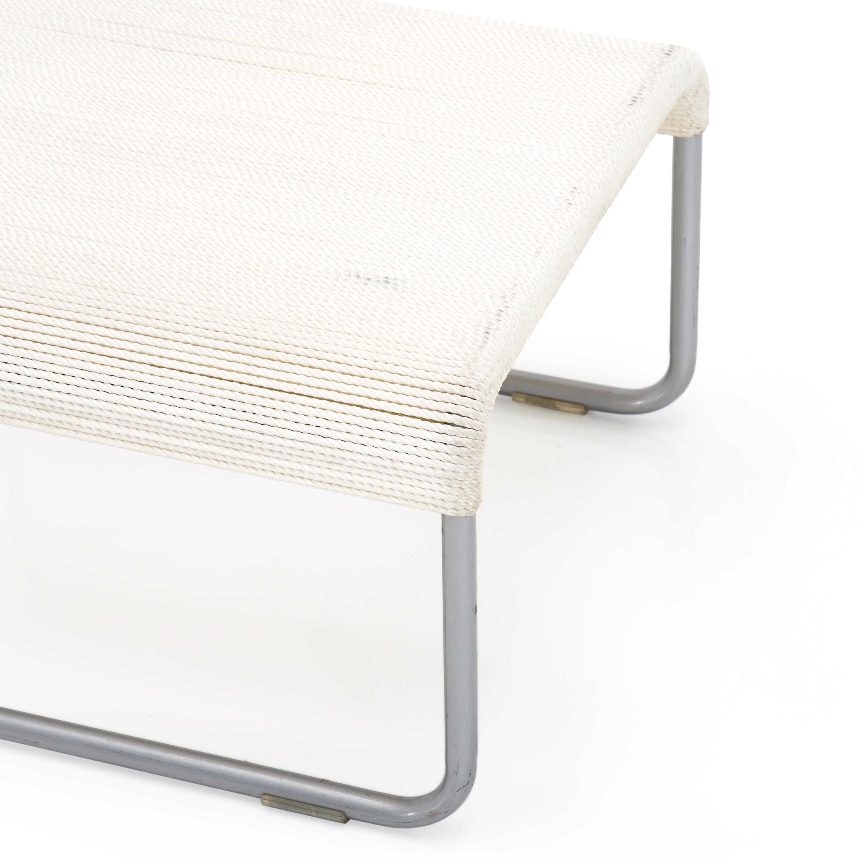 Details: Case study ottoman leg-rest with white stainless steel frame and nautical cord seat cushion
