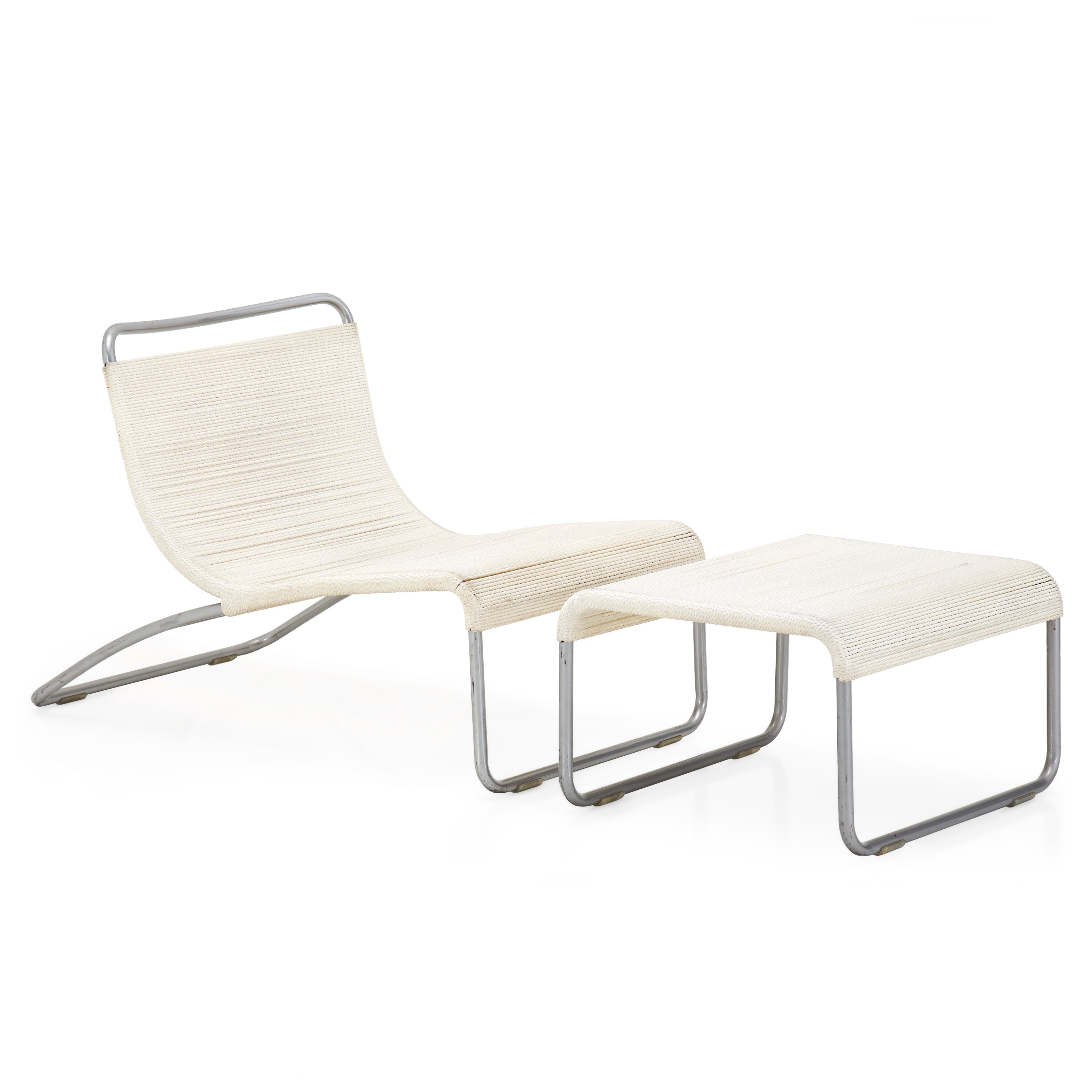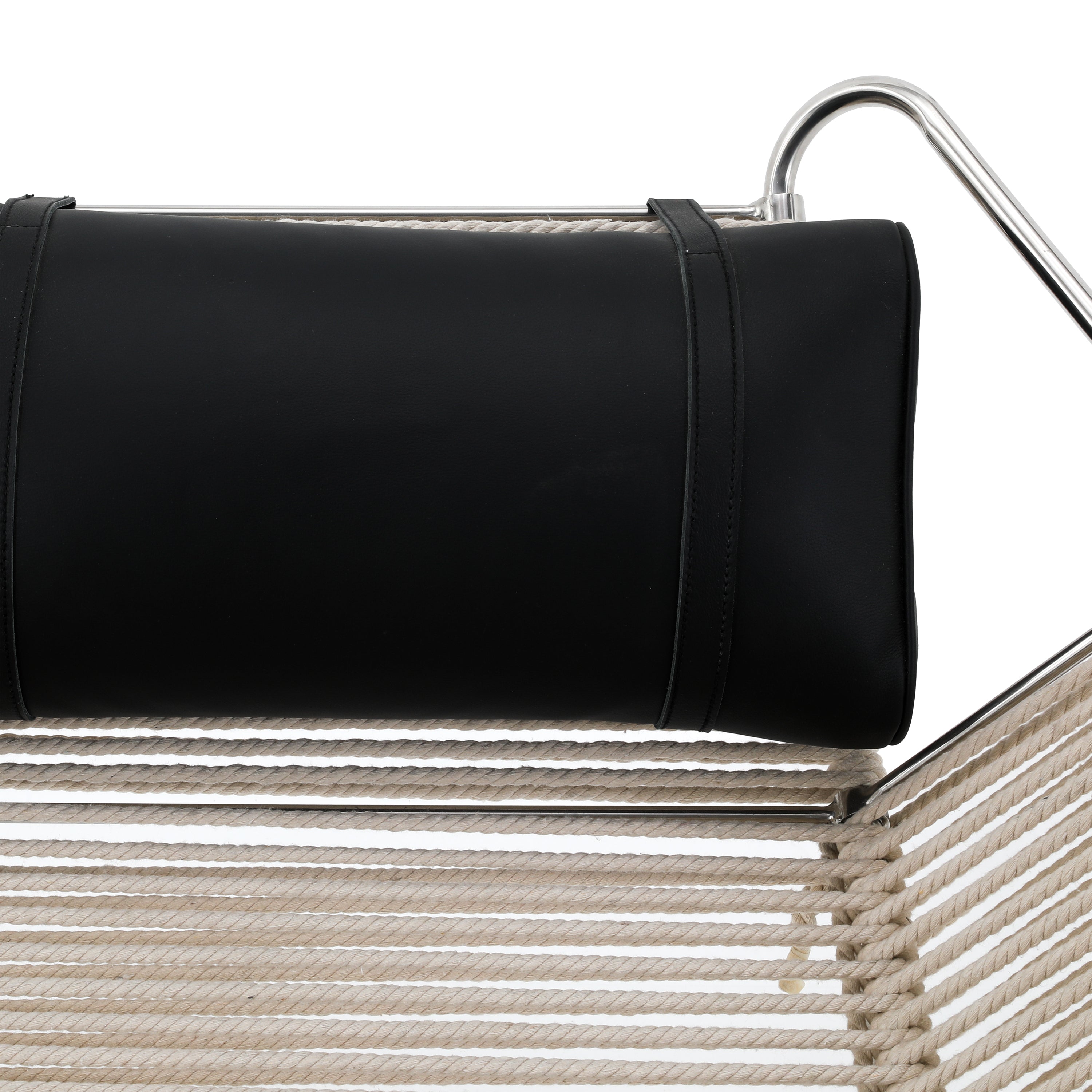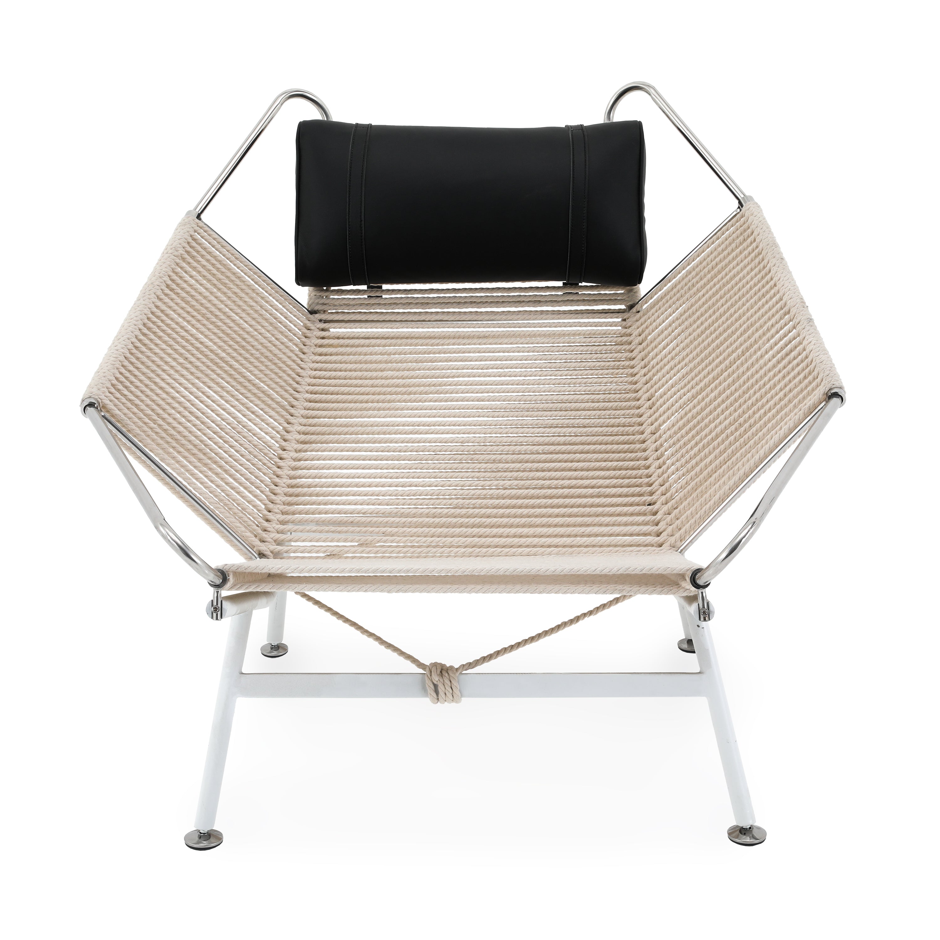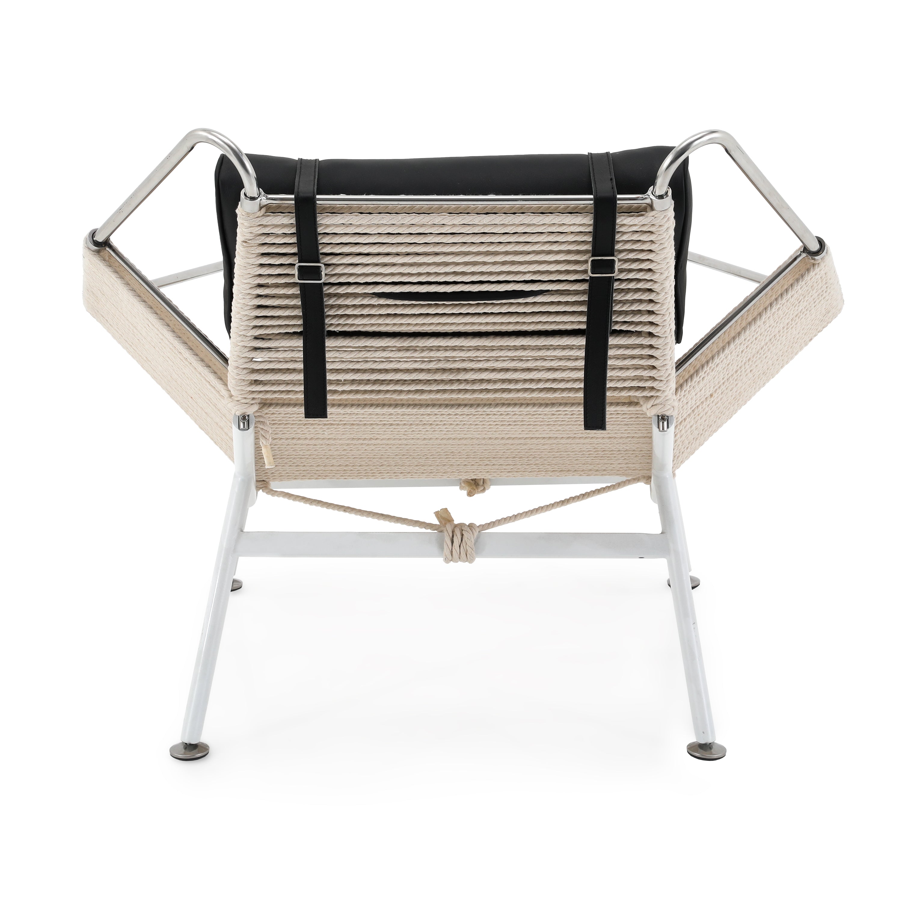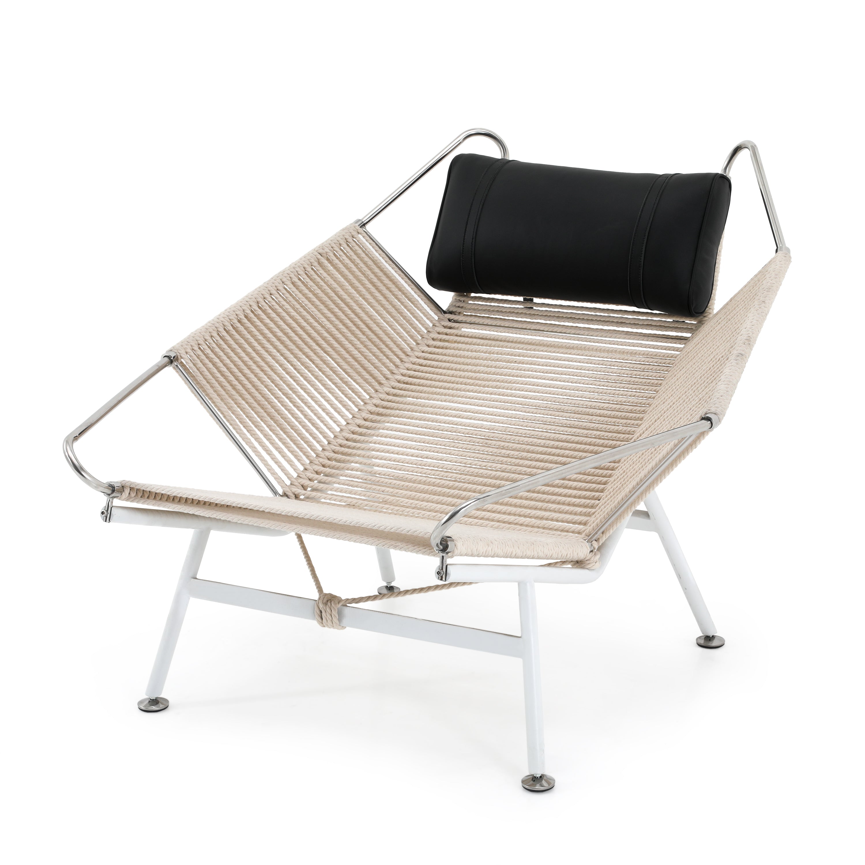 Details: Case study ottoman leg-rest with white stainless steel frame and nautical cord seat cushion