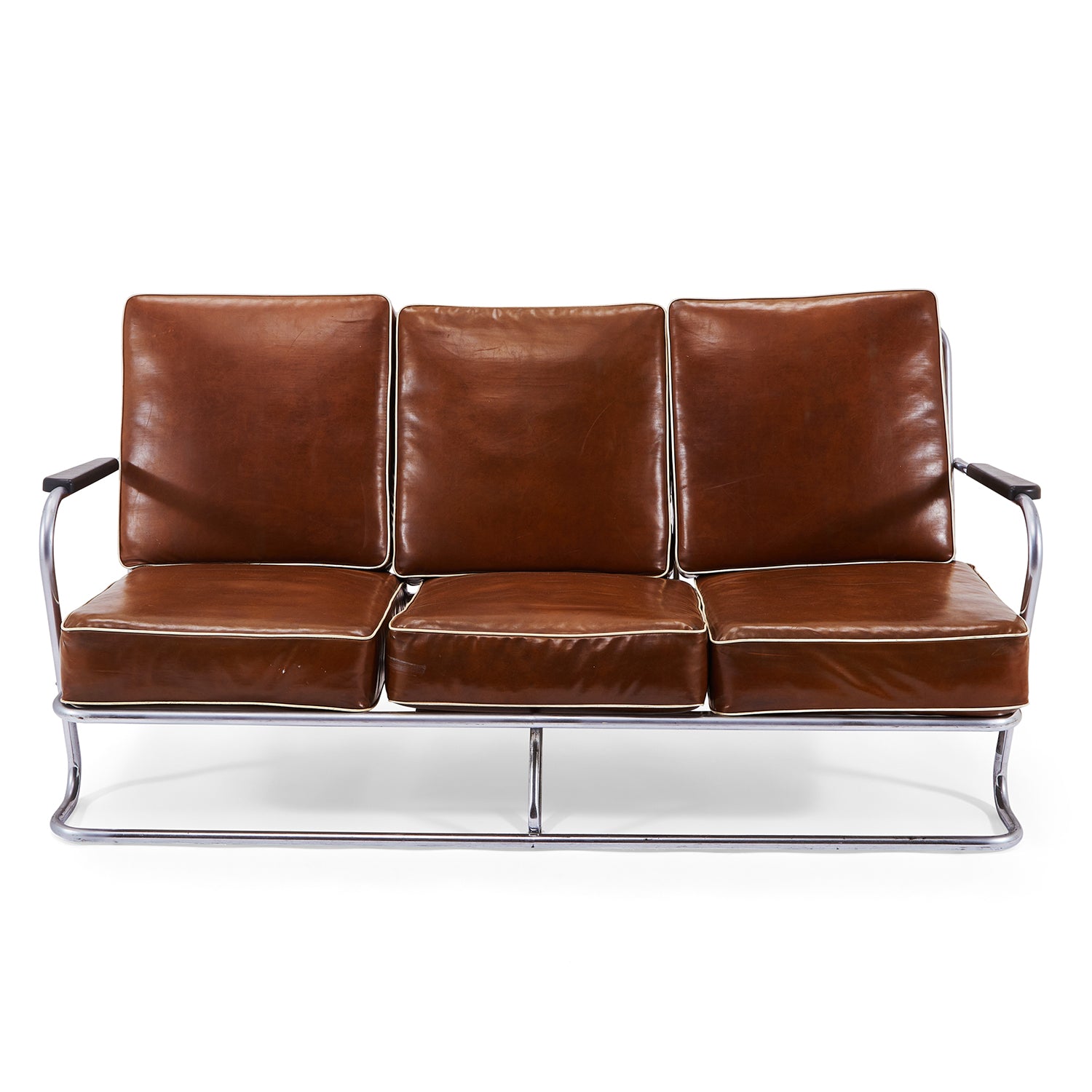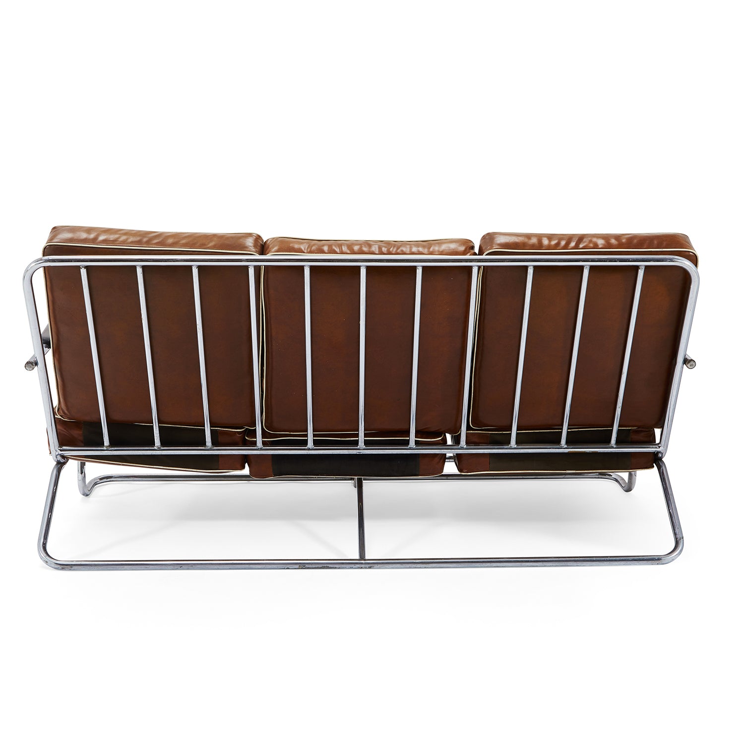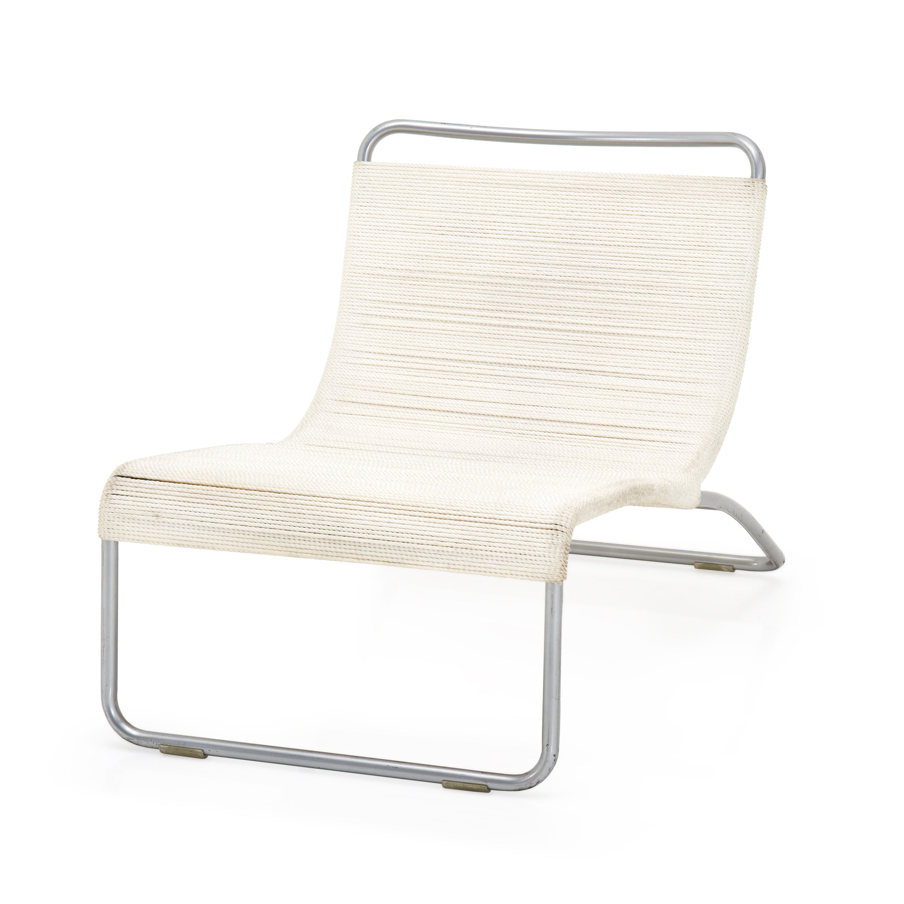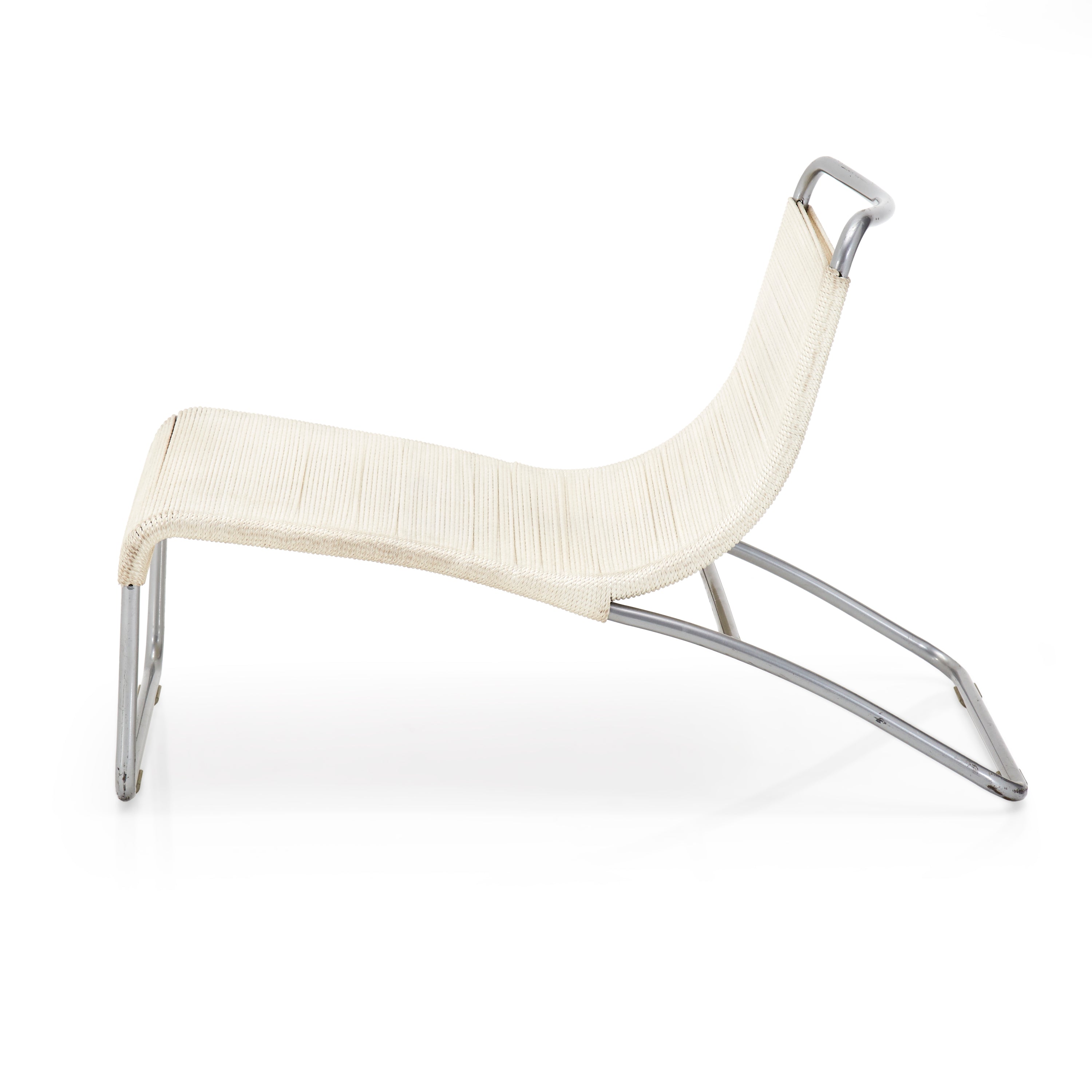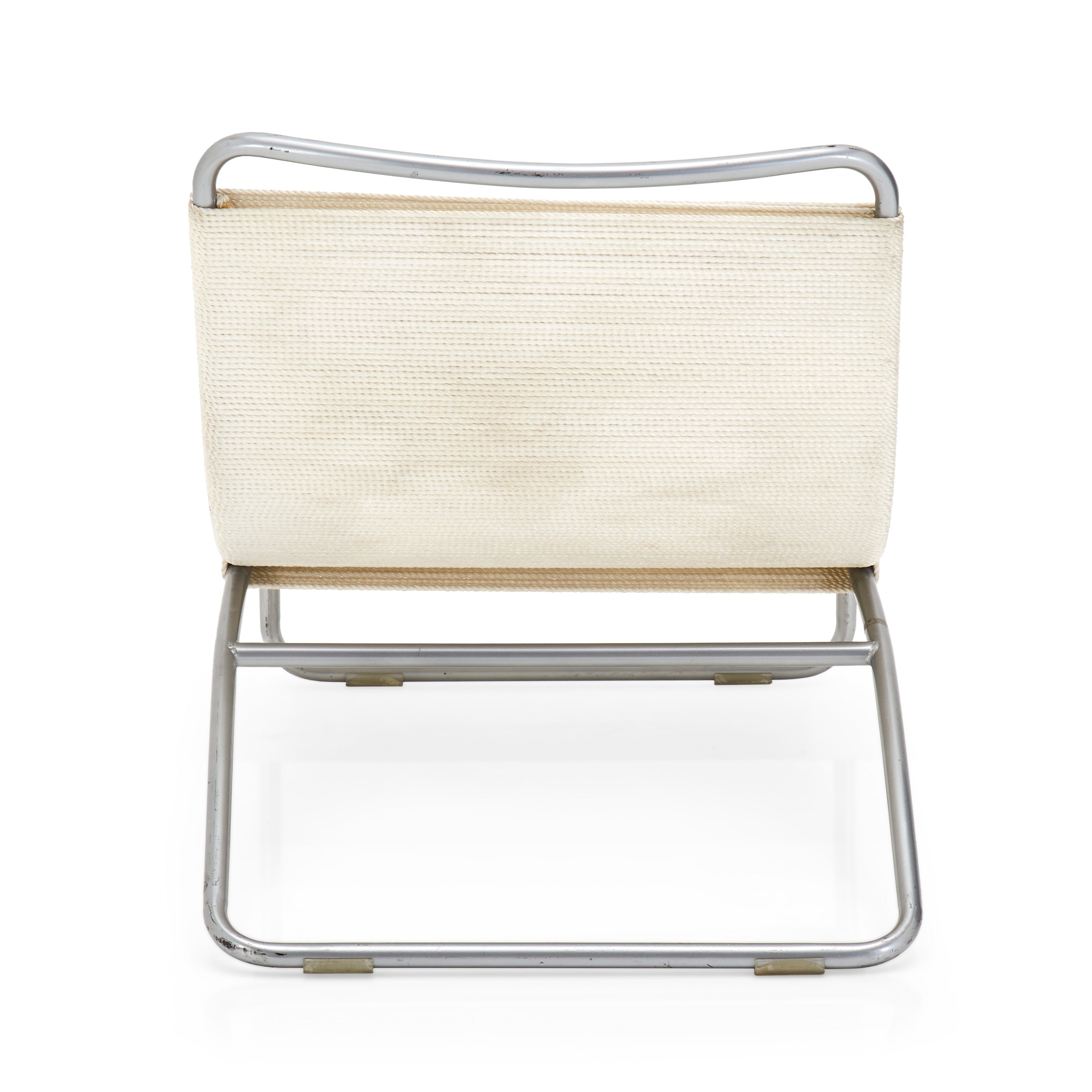 Details: Case study ottoman leg-rest with white stainless steel frame and nautical cord seat cushion