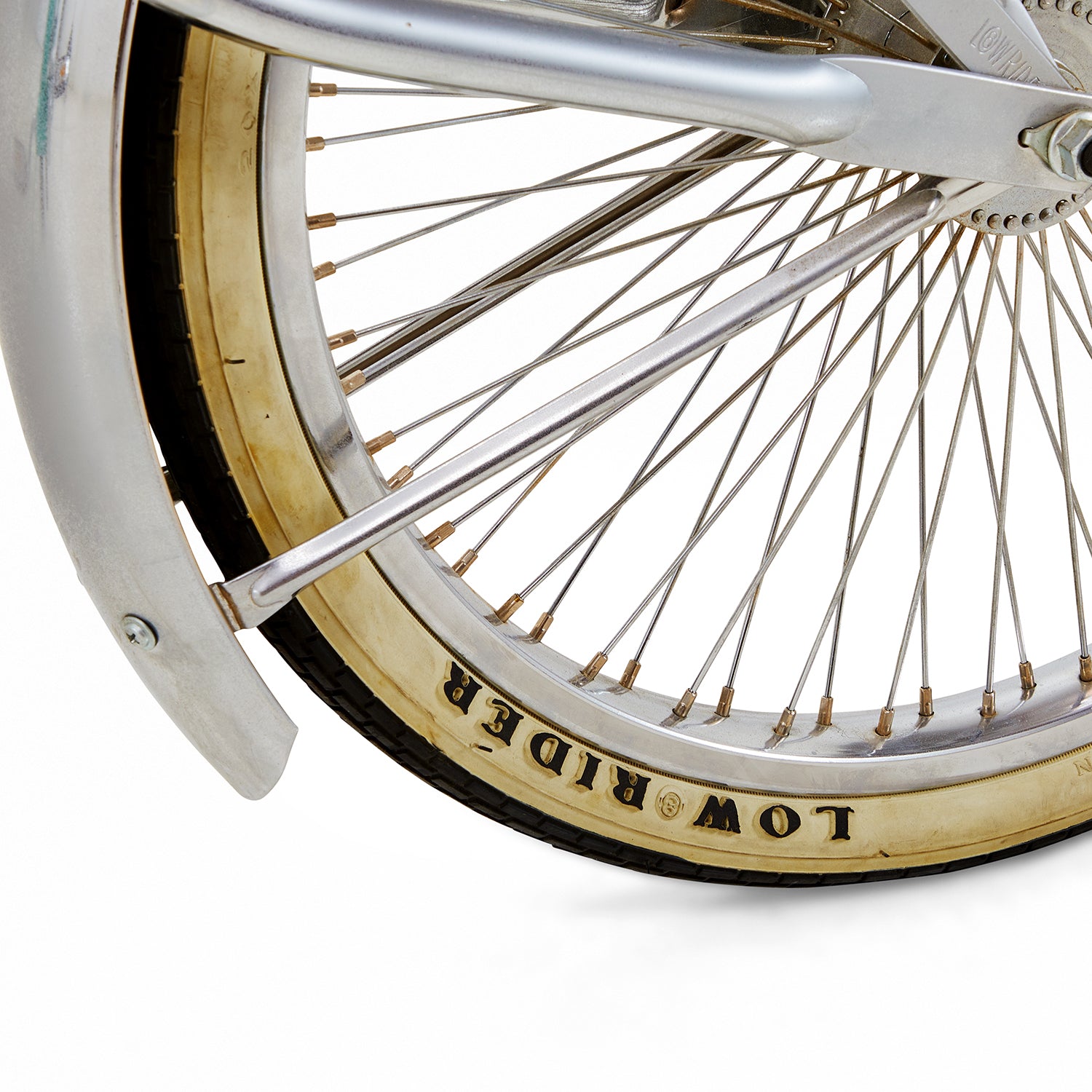 Details: Chrome lowrider tricycle with stylish ornamentations including horn, mirrors, spider web gear, and twisted metal cup holderDimensions: 50" H x 80" L x 31" W...