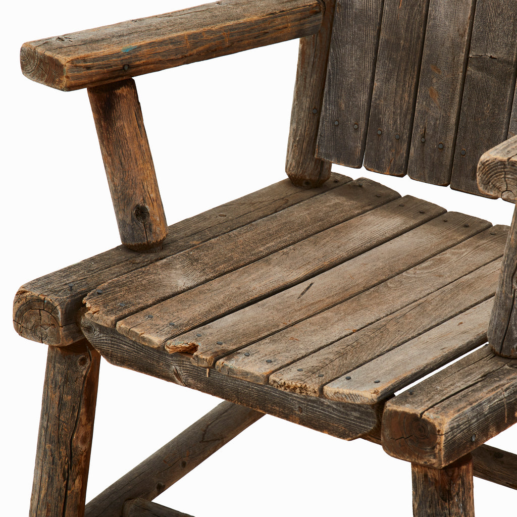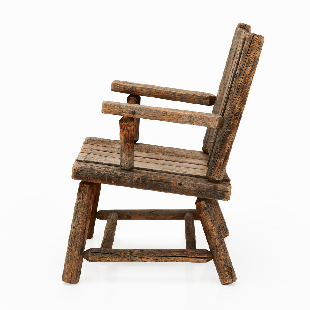 Details: Rustic handmade wood low armchair Dimensions: 44" H x 23" W x 18" D