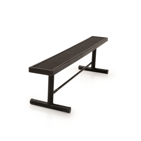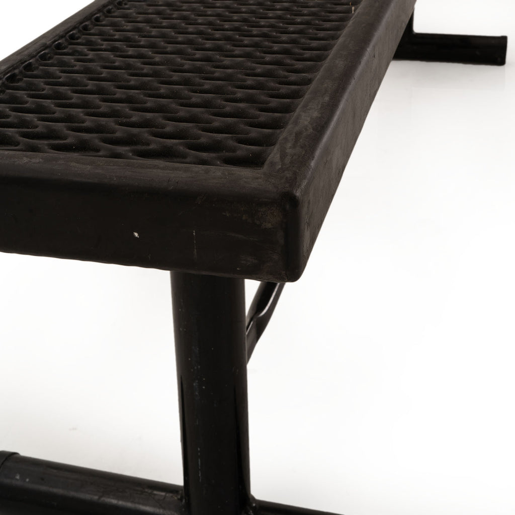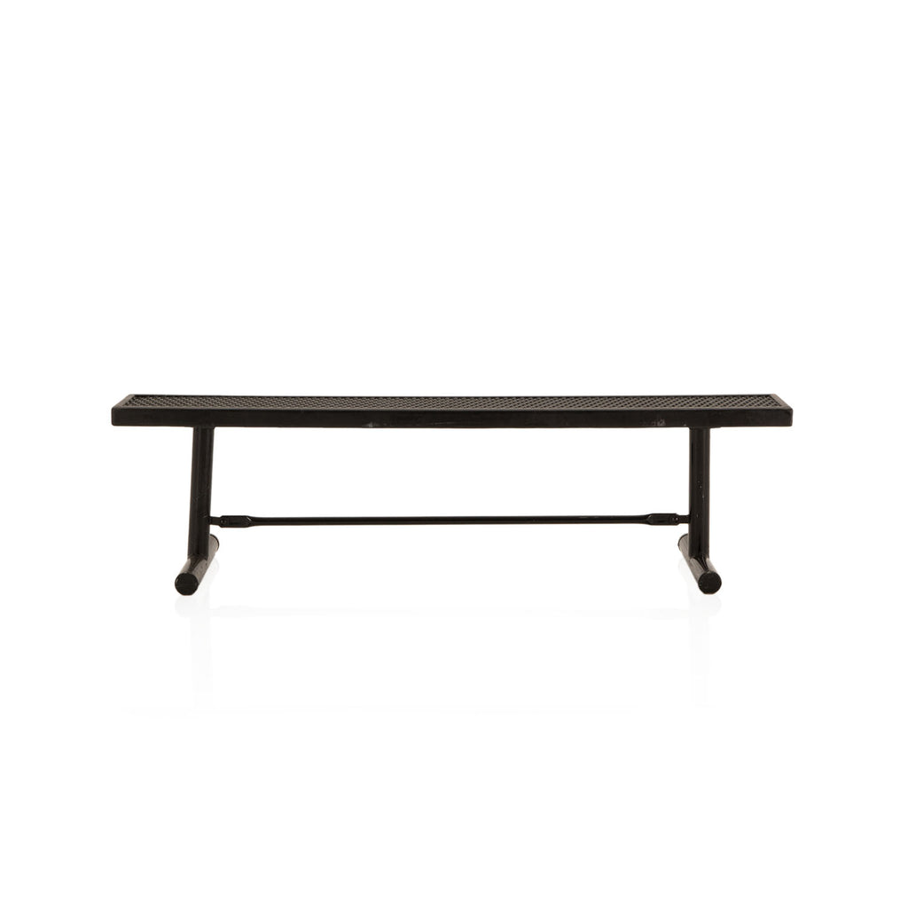 Details: Black coated metal lockeroom bench Dimensions: 19" H x 72.5" L x 10" D