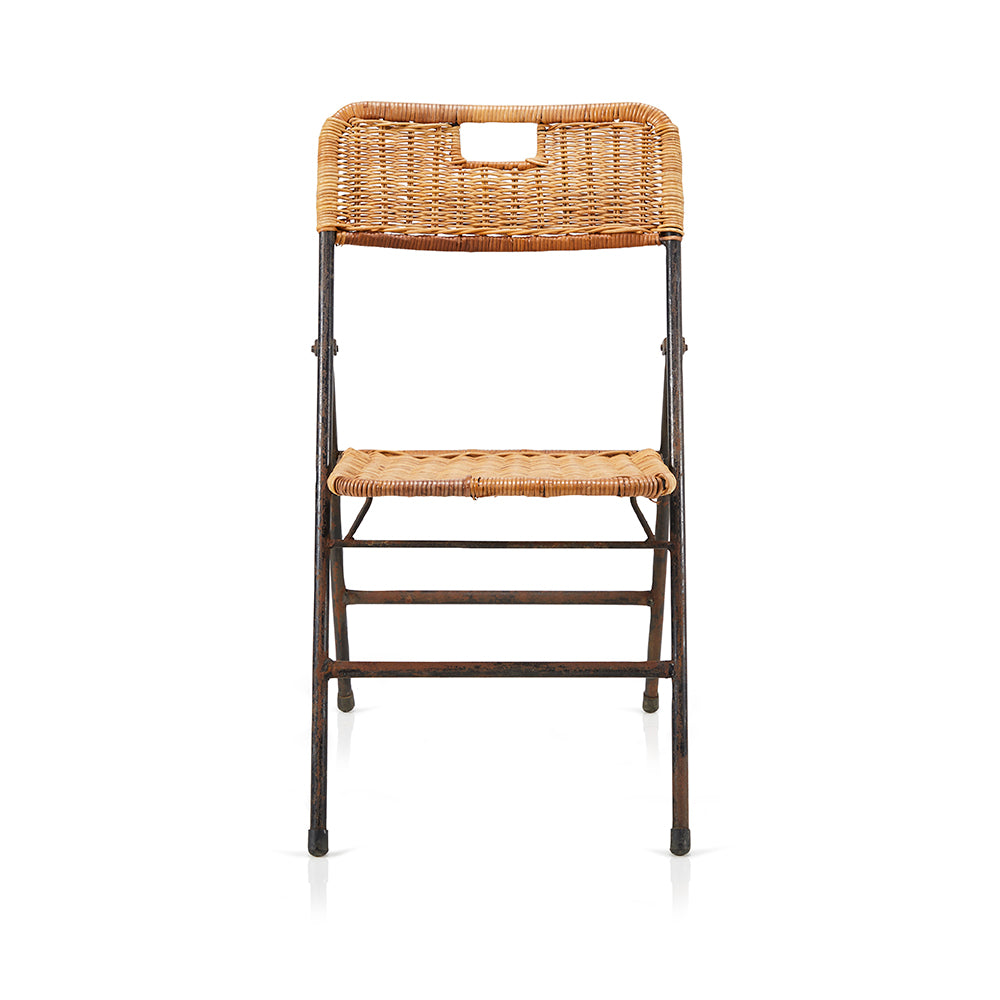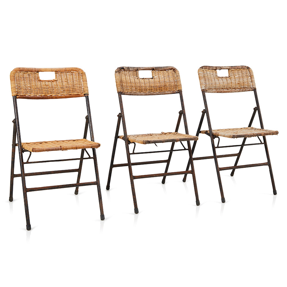Details: Wicker folding chair with black metal frame Dimensions: 33" H x 18" W x 21" D Quantity: 3