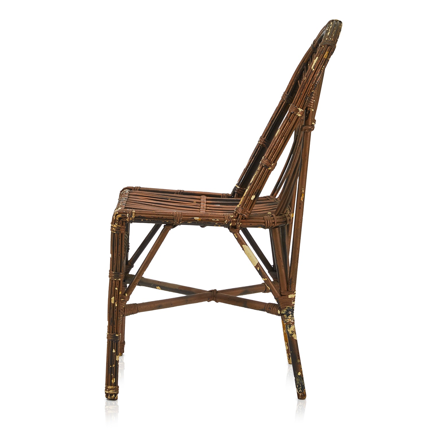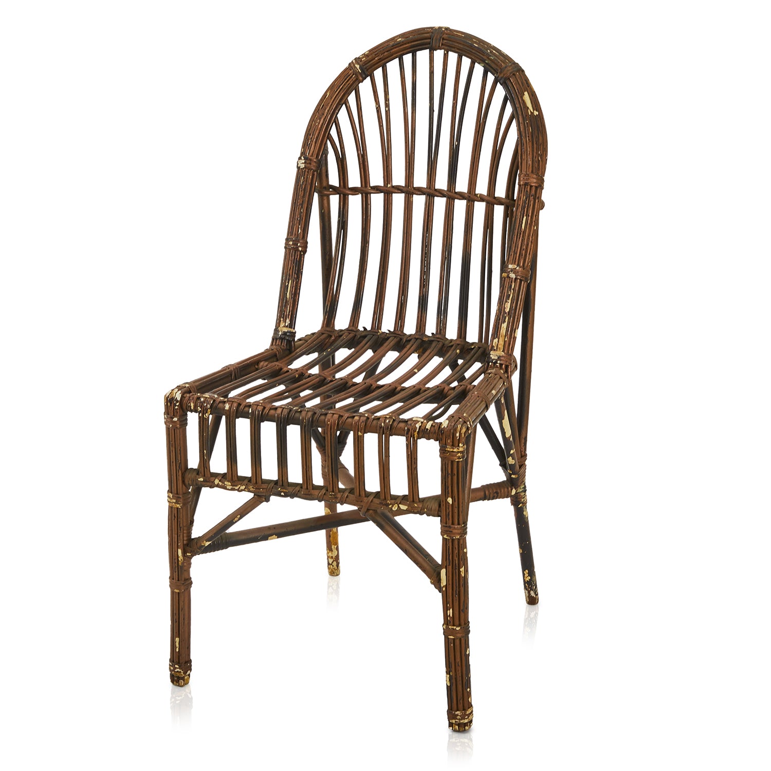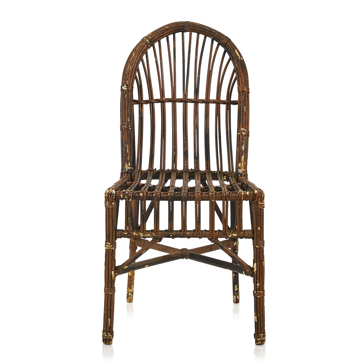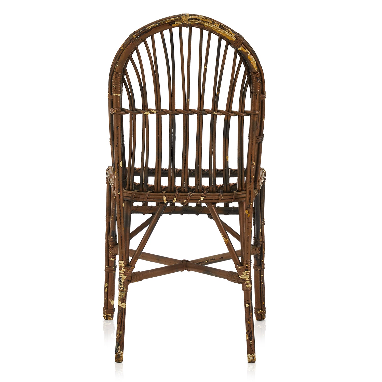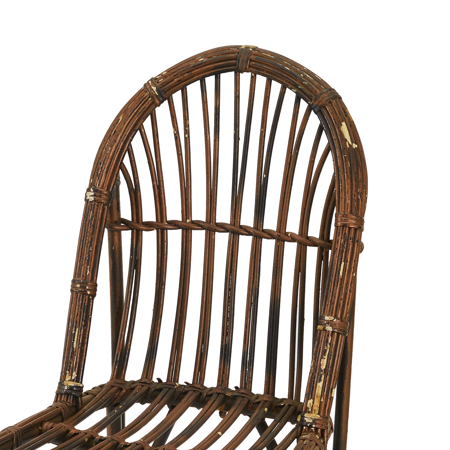 Details: Rattan wicker patio chair with a rustic distressed look Dimensions: 34" H x 18" W x 20" D