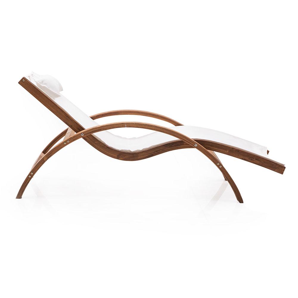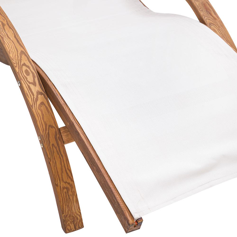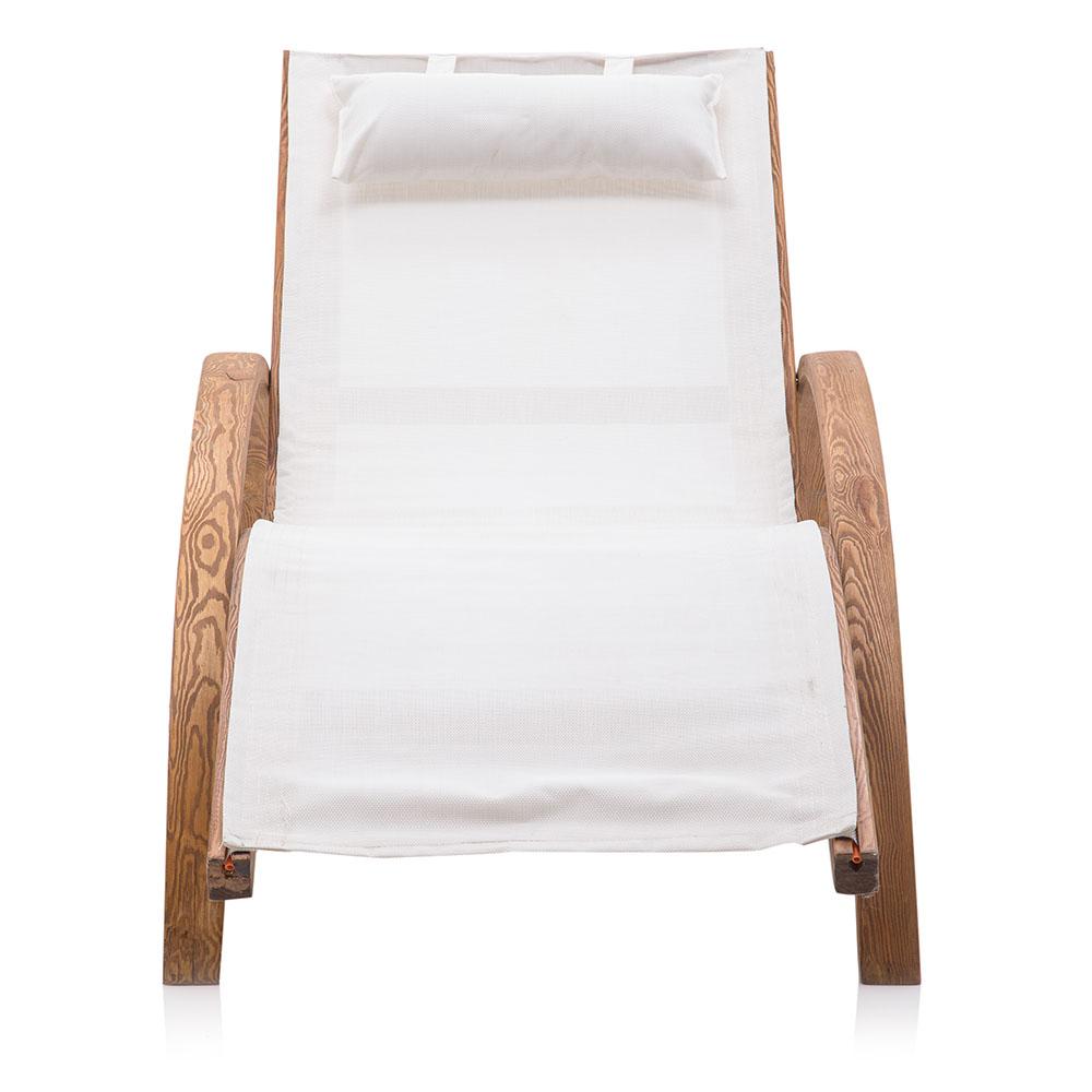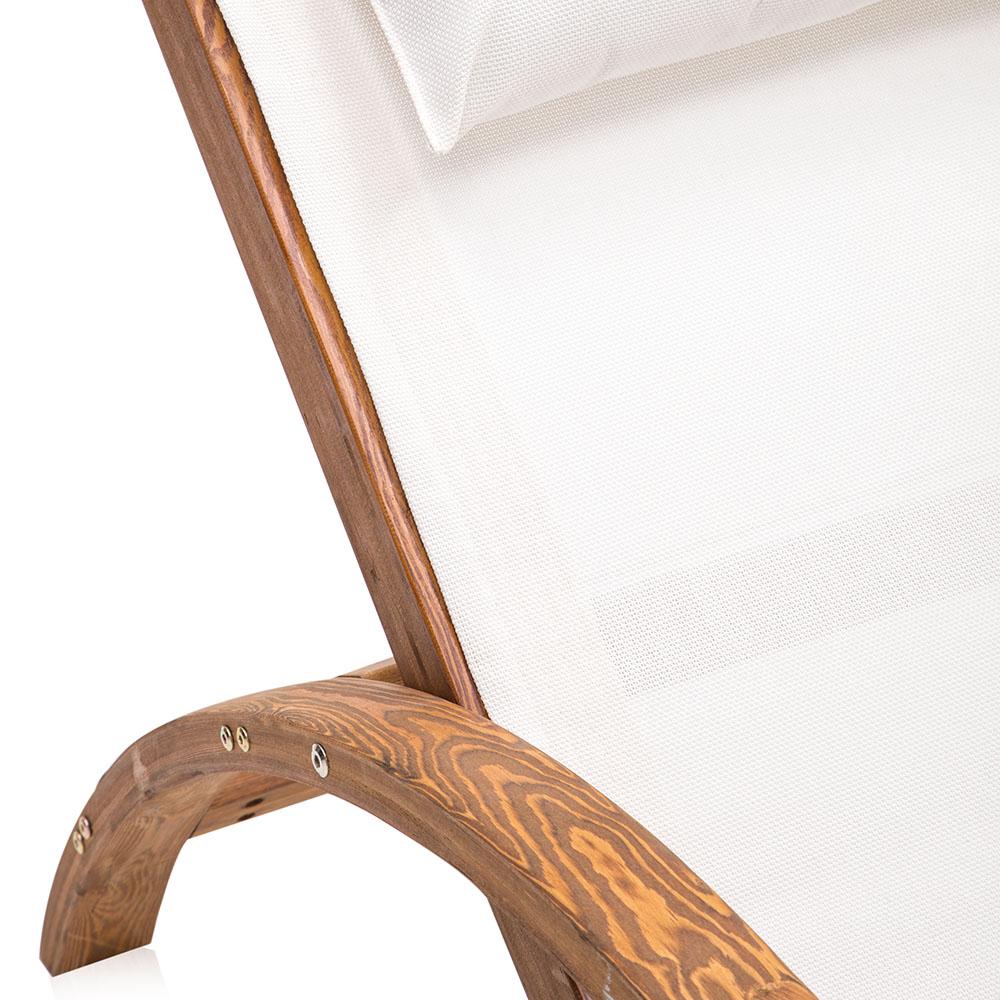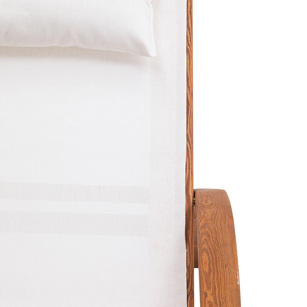 Details: Natural Wood Frame, Lightweight White Canvas Sling Seat w attached head pillow