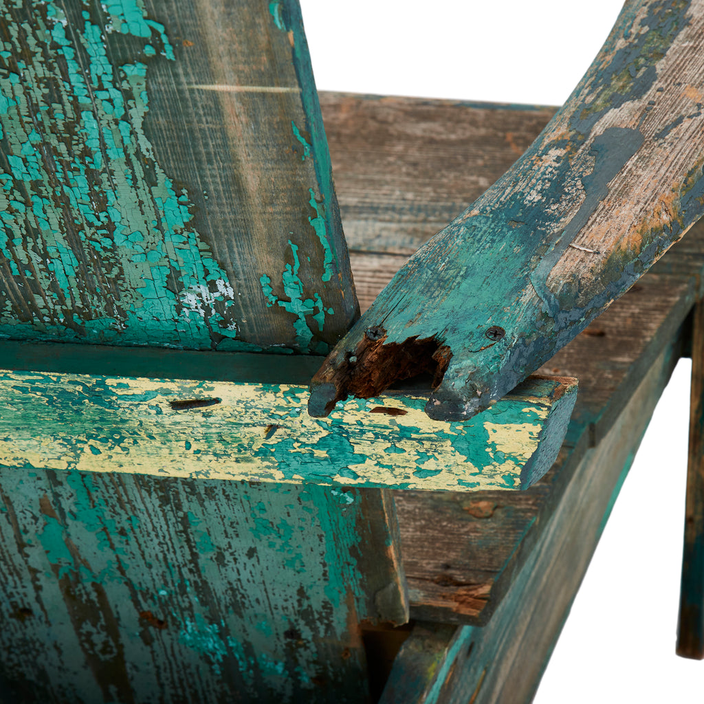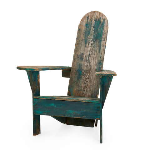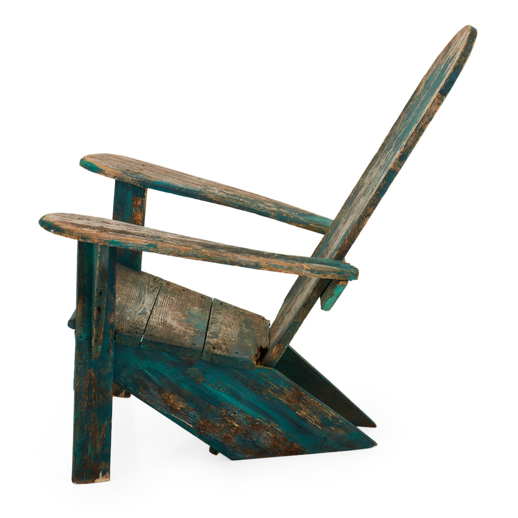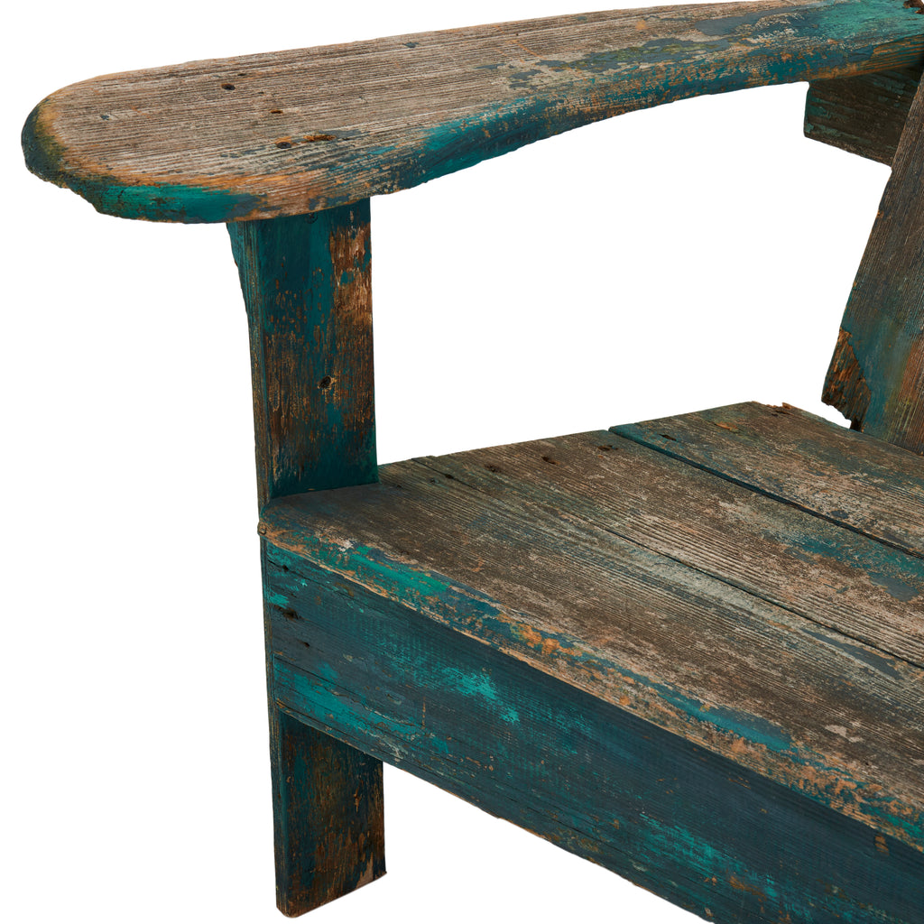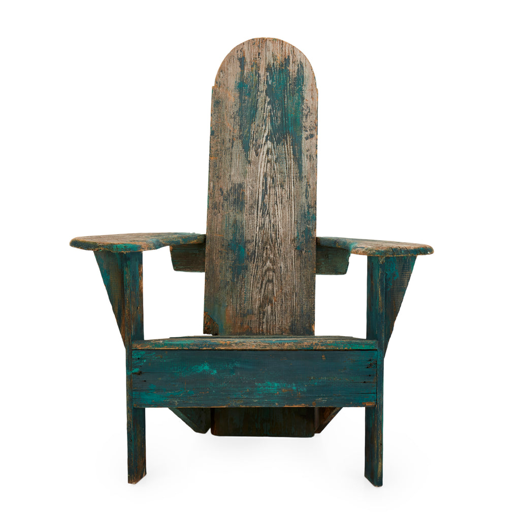 Details: Rustic adirondack chair, blue base with distressed backboard Dimensions: 35" H x 37" W x 33" D