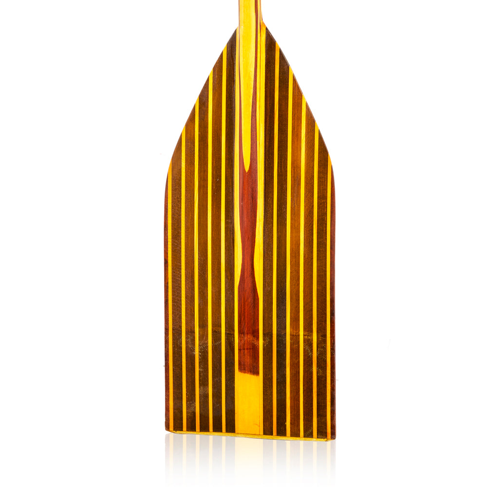 Details: Wooden paddle boat ore with yellow stripes Dimensions: 54" H x 10" W x 2" D
