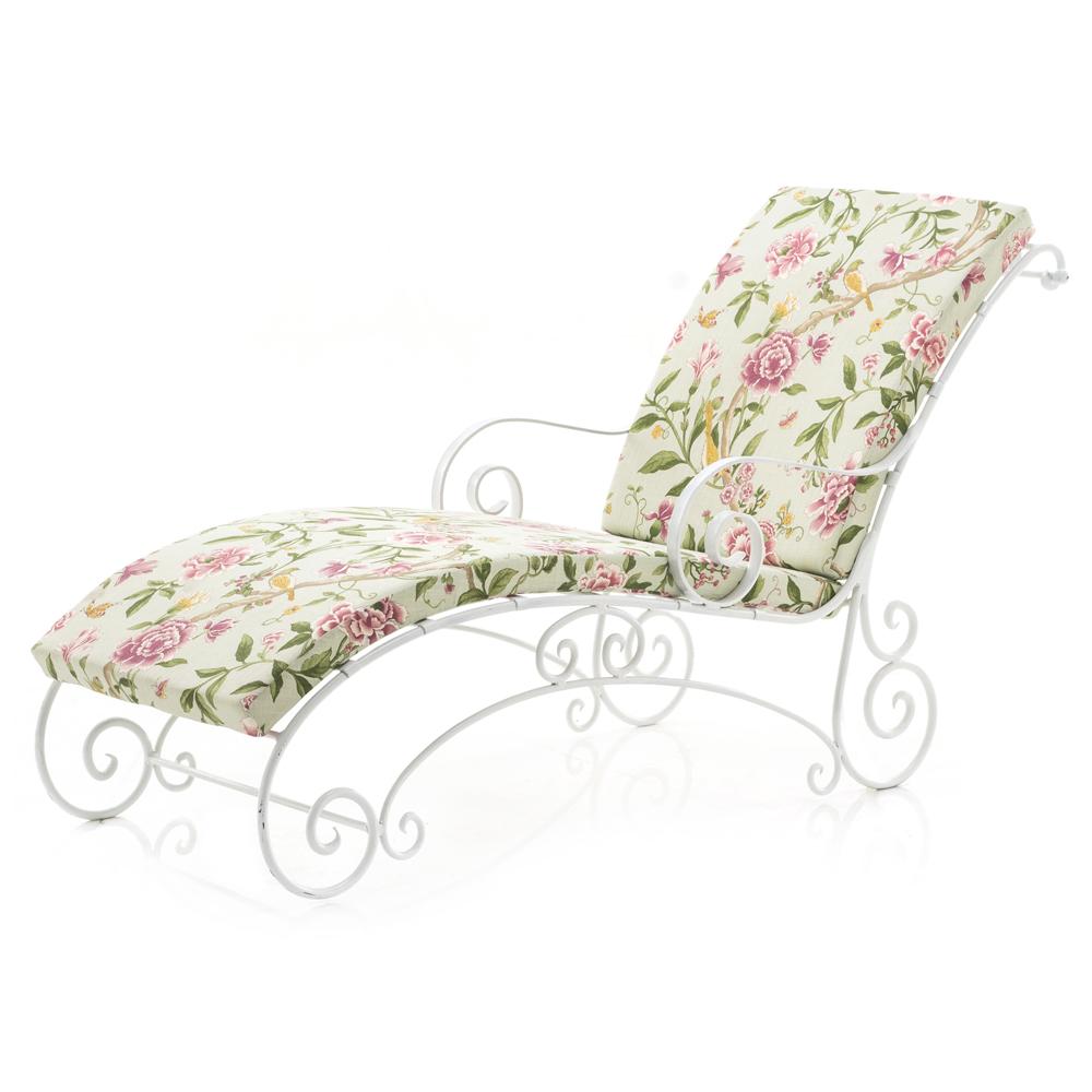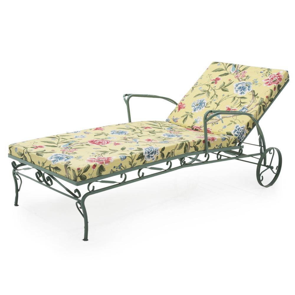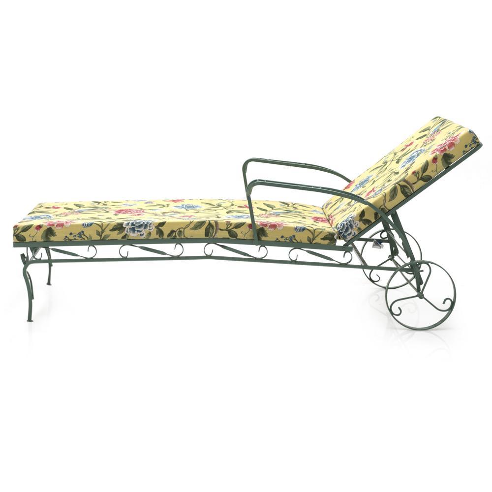Green Iron Chaise Lounger w Floral Cushion Dimensions: 29" H x 30.5" W x 96" D