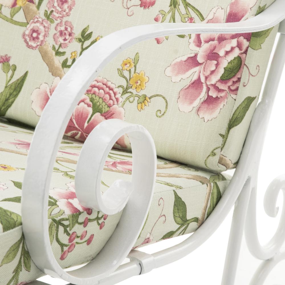 Details: White Metal iron chaise with removable colorful floral cushion Dimensions: 37" H x 70" W x 24" D Quantity : 2