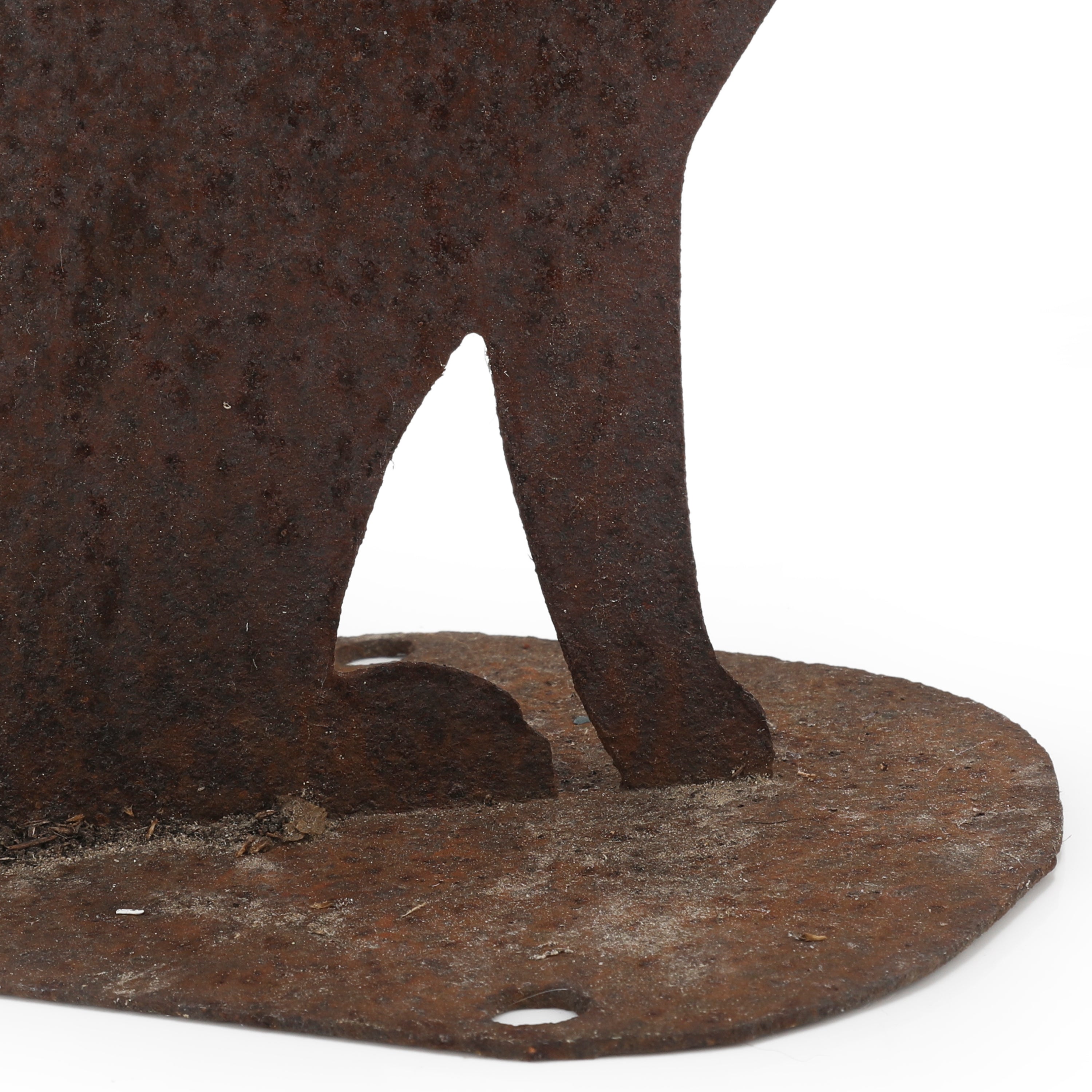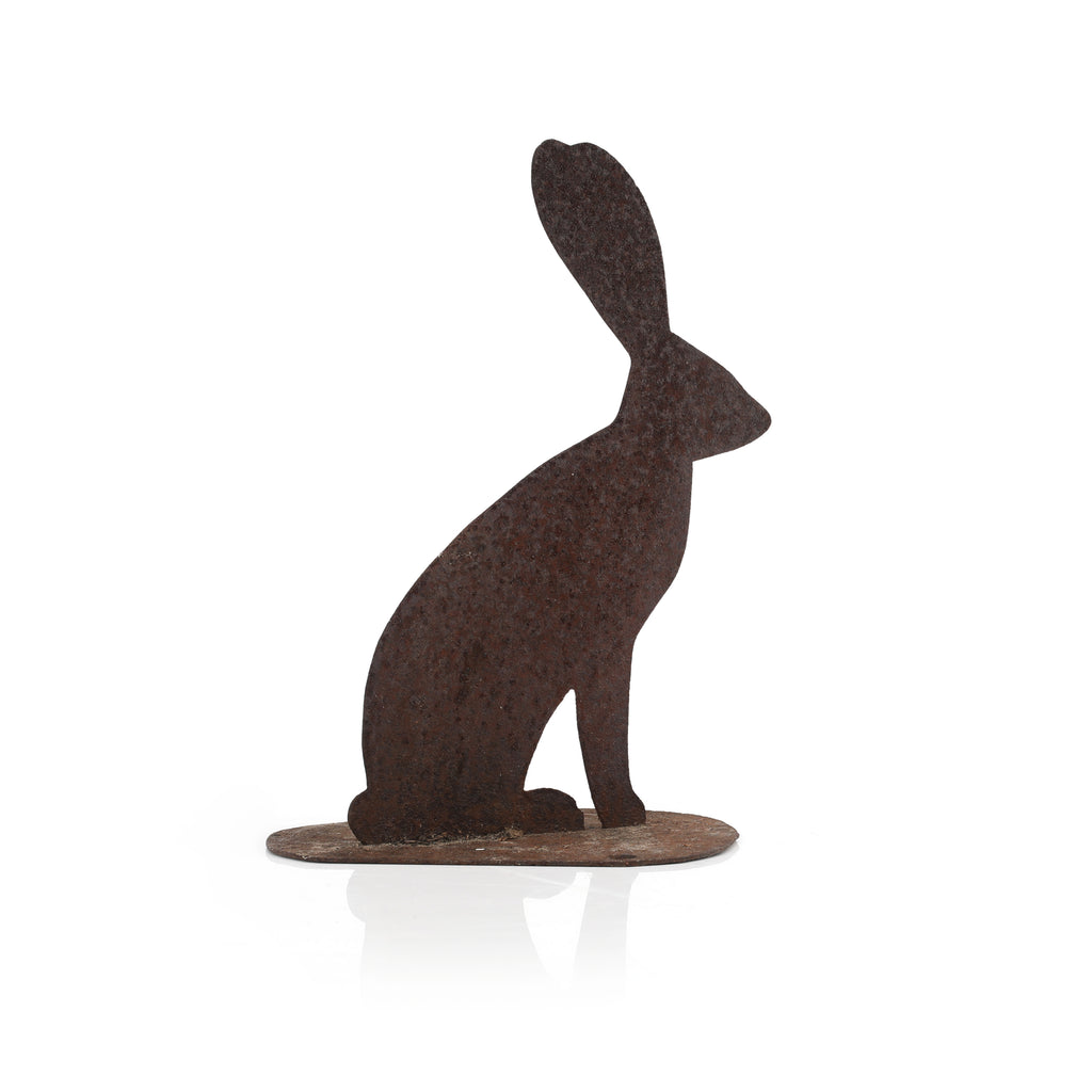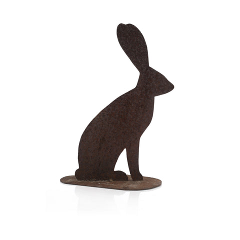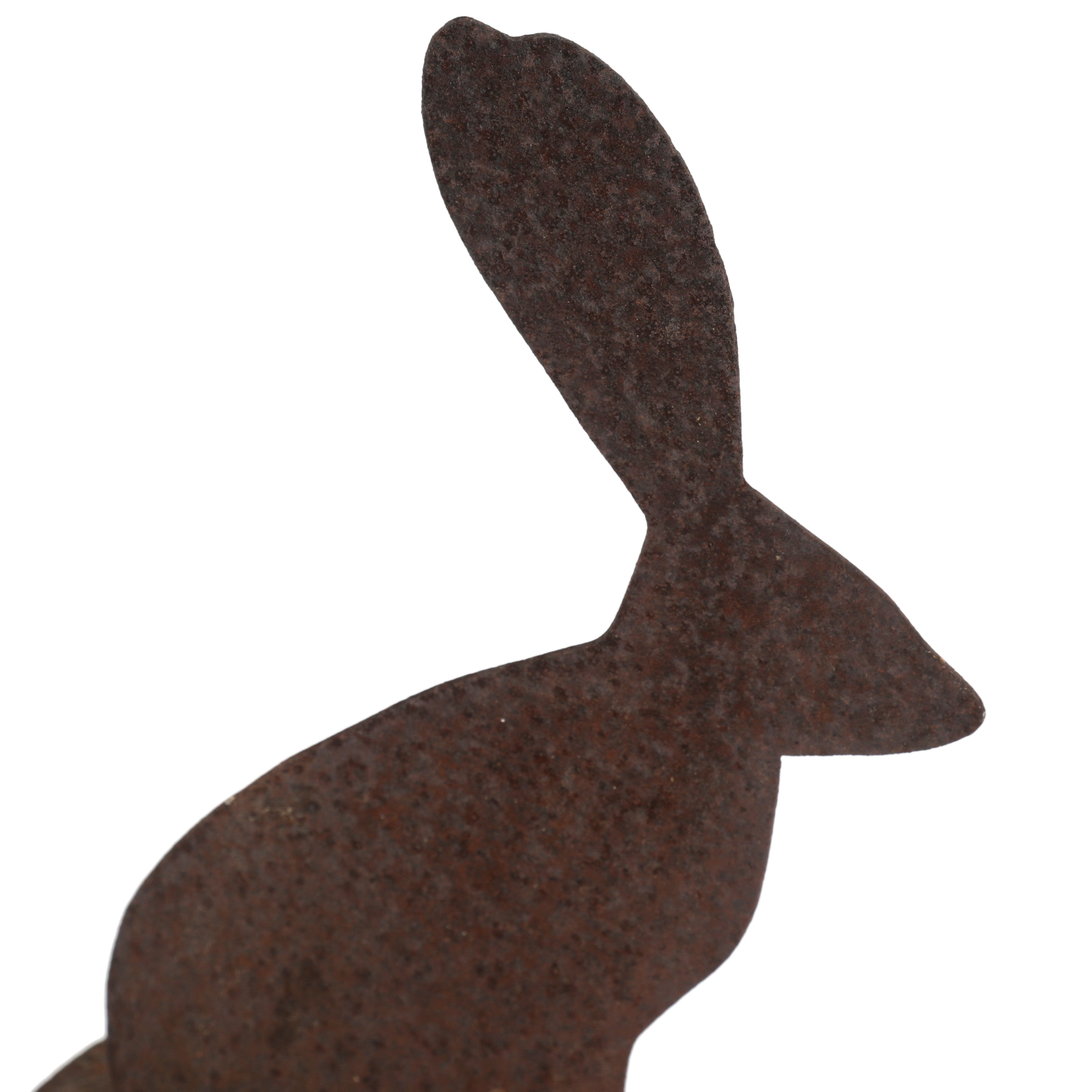 Details: Small metal rabbit lawn ornament with rusty exterior