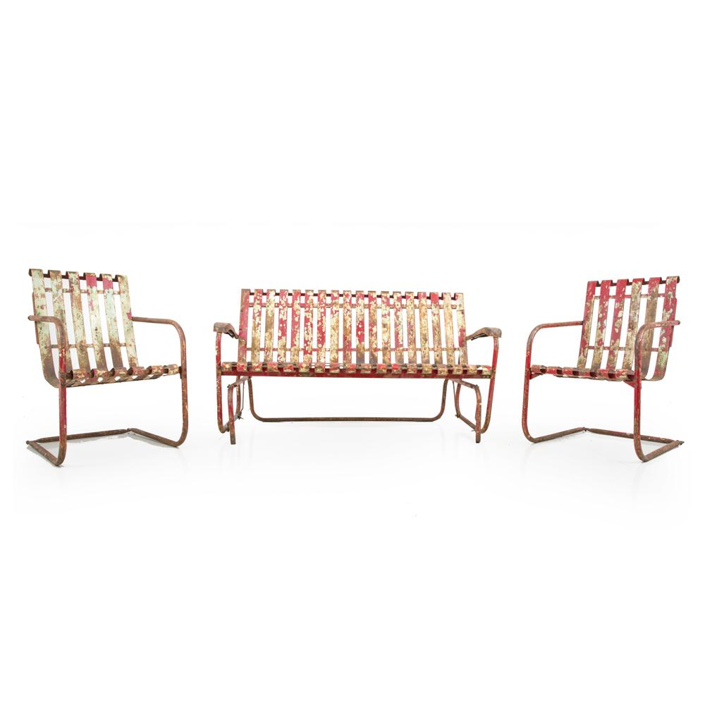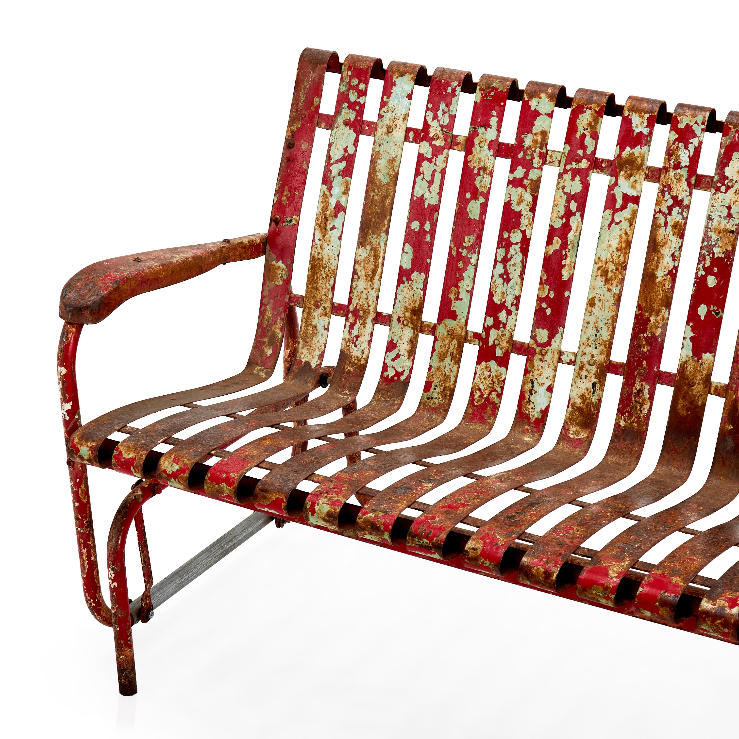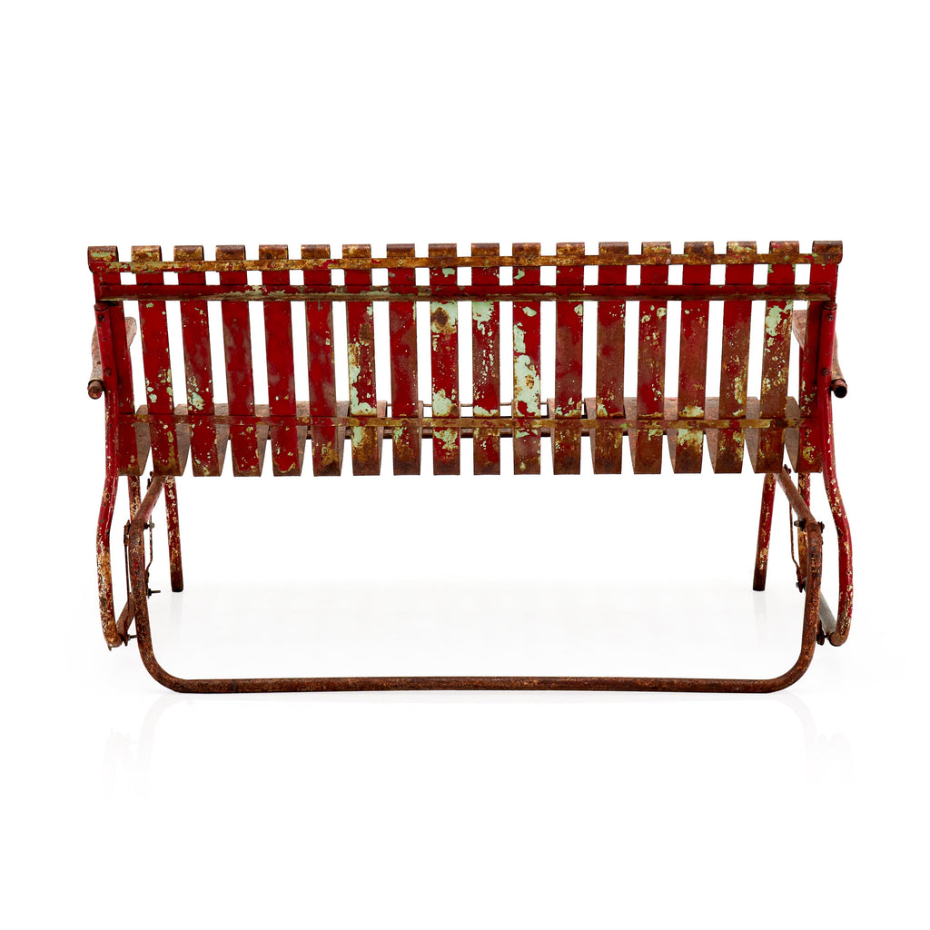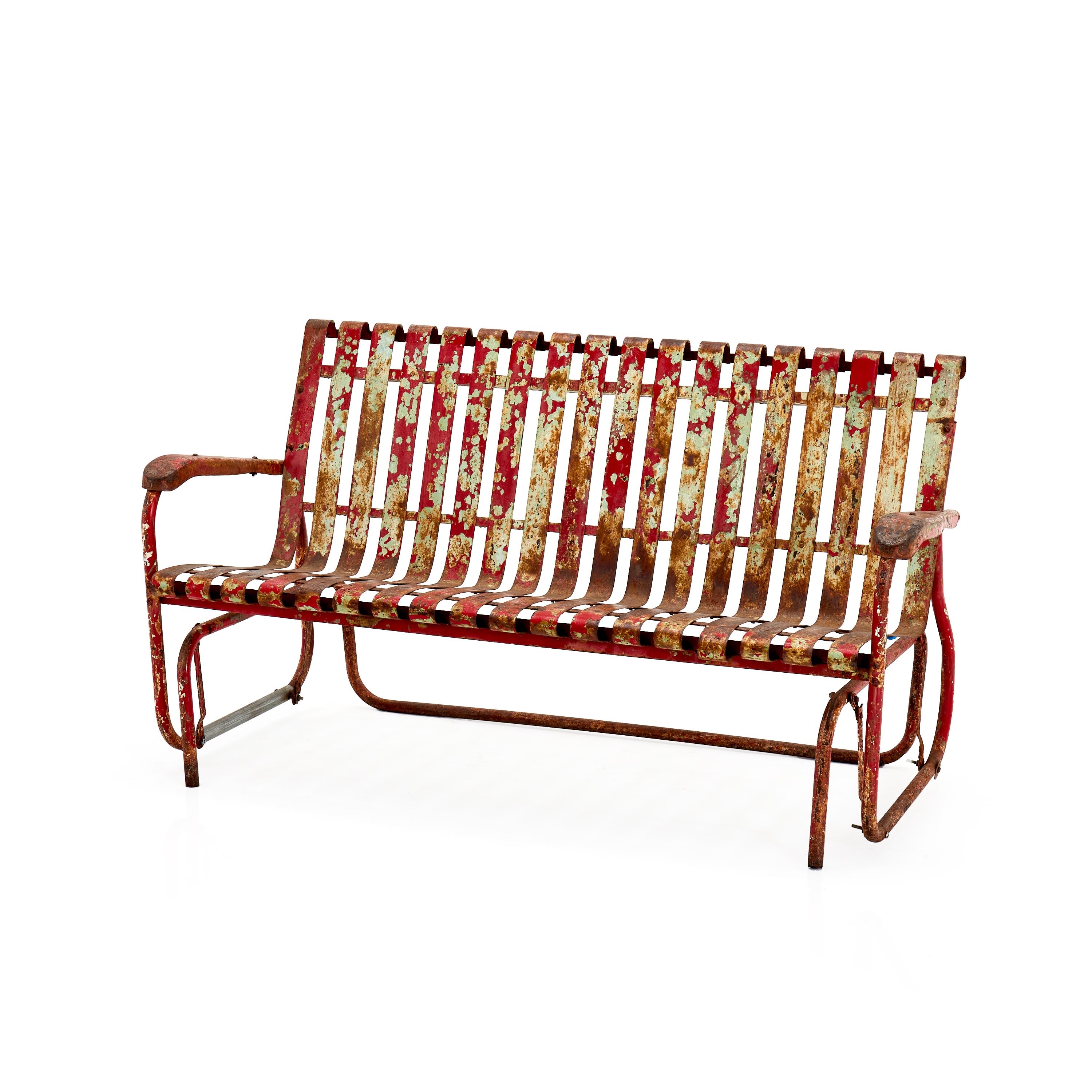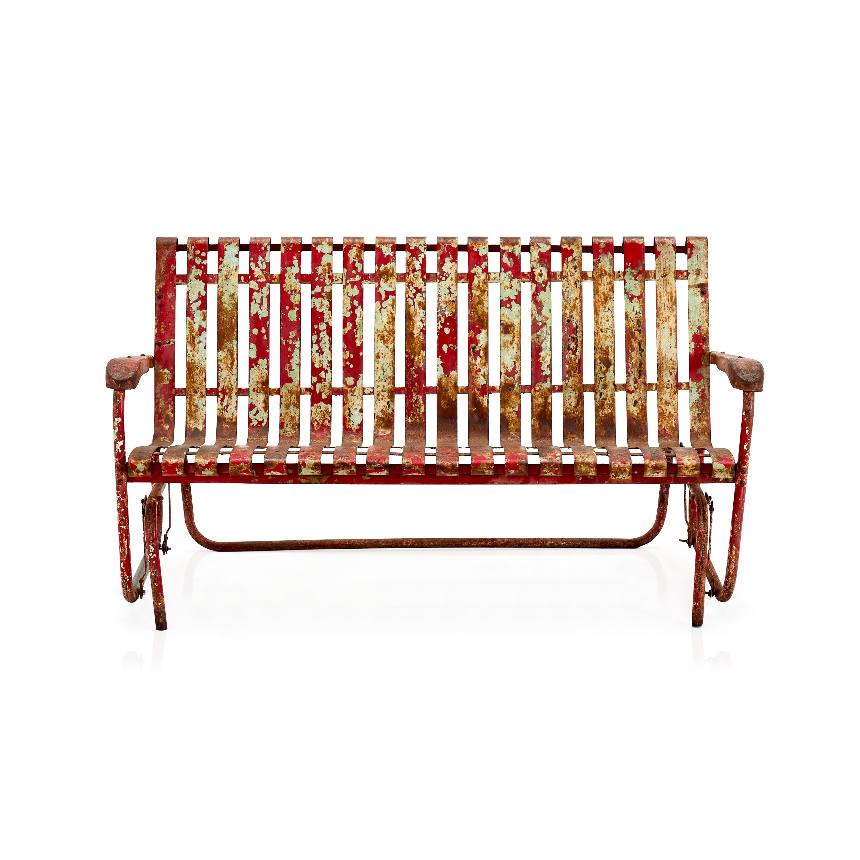 Details: Rustic, Metal Loveseat, Outdoor, Peeling/Rusted White PaintDimensions: 31" H x 59" W x 27" D