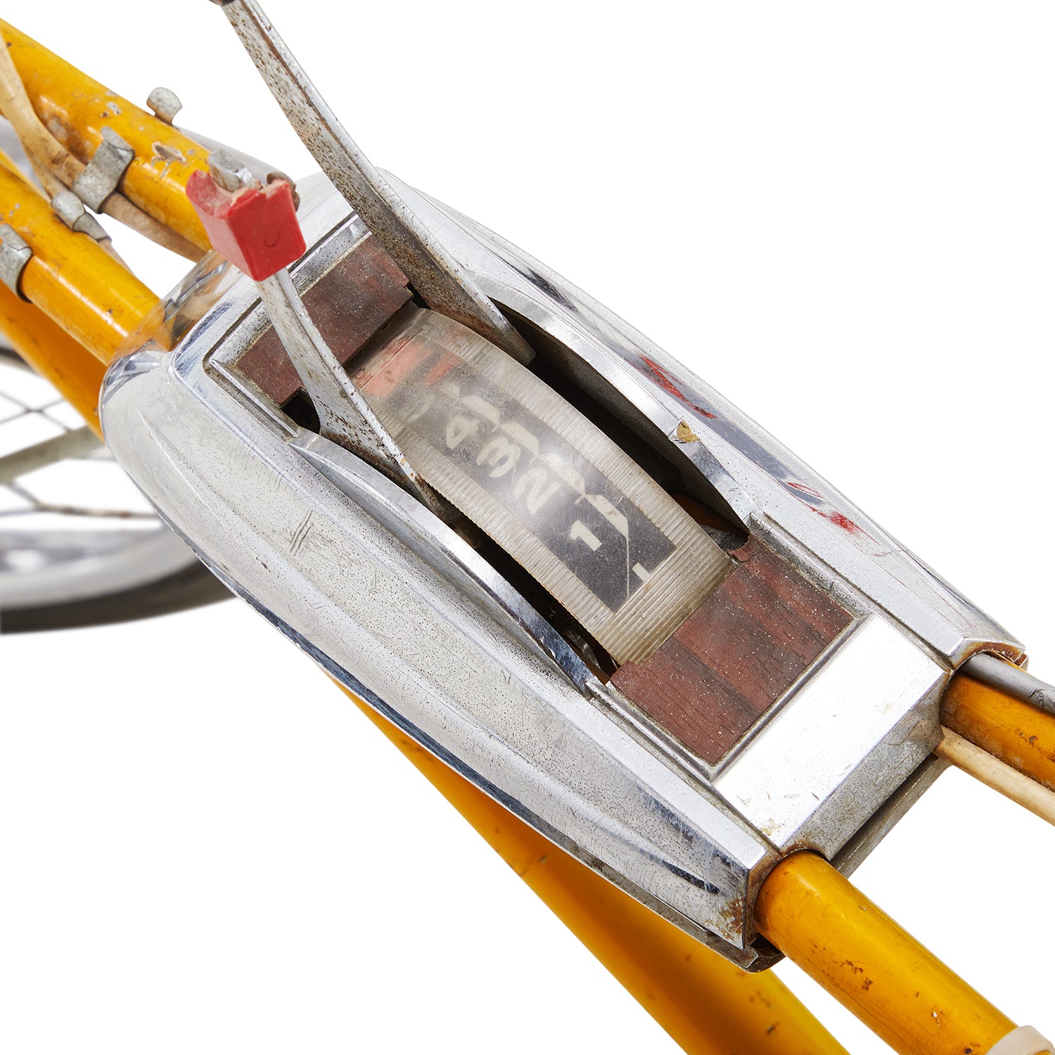 Details: Vintage "Screamer 1" bicycle with banana seat, ape-hanger handlebars, and oversized shift lever Dimensions: 40" H x 40" L x 12" W Quantity: 1