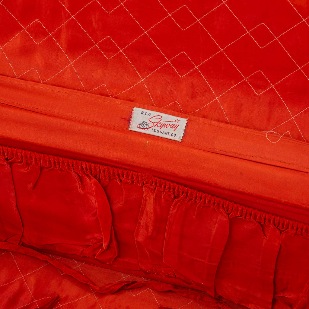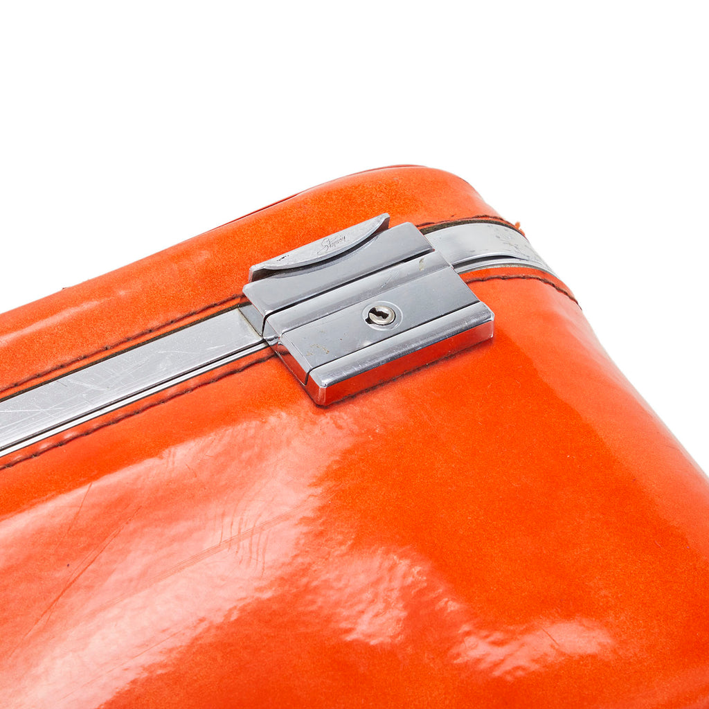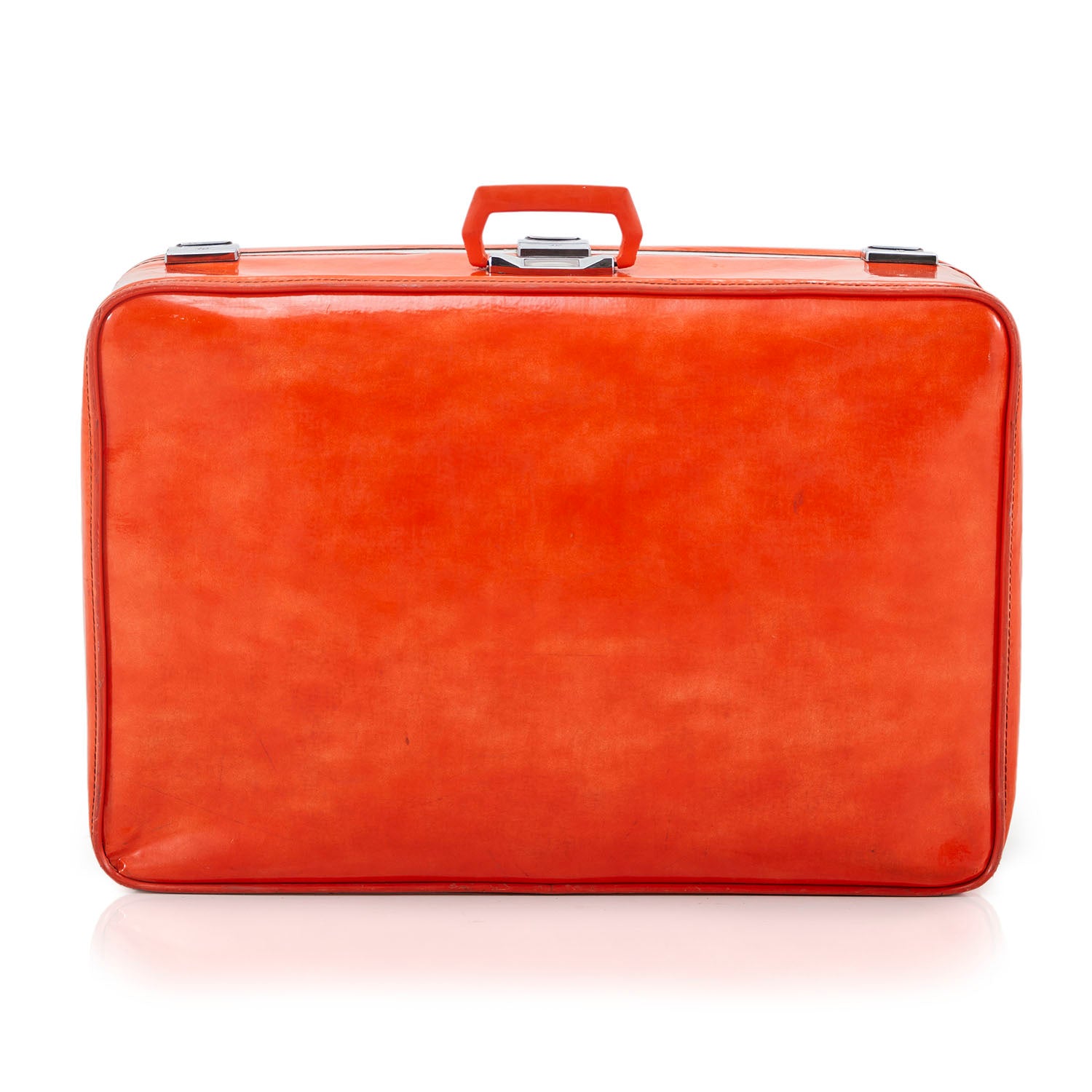 Details: Vintage orange leather suitcase with matching piece Dimensions: 20" H x 29" W x 10.5" D Quantity: 1