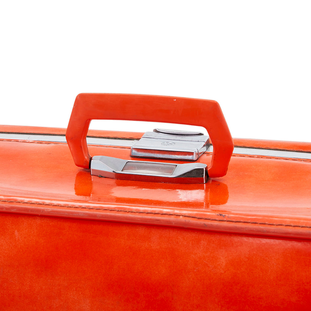 Details: Mid-century orange leather briefcase in great condition Dimensions: 13" H x 18" W x 4" D Quantity: 1