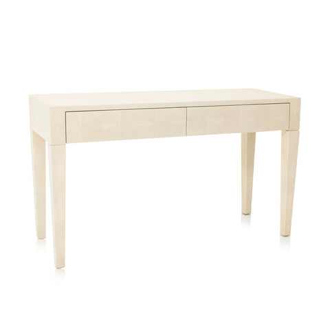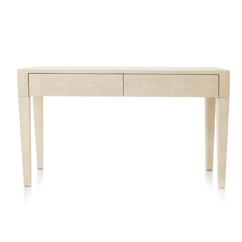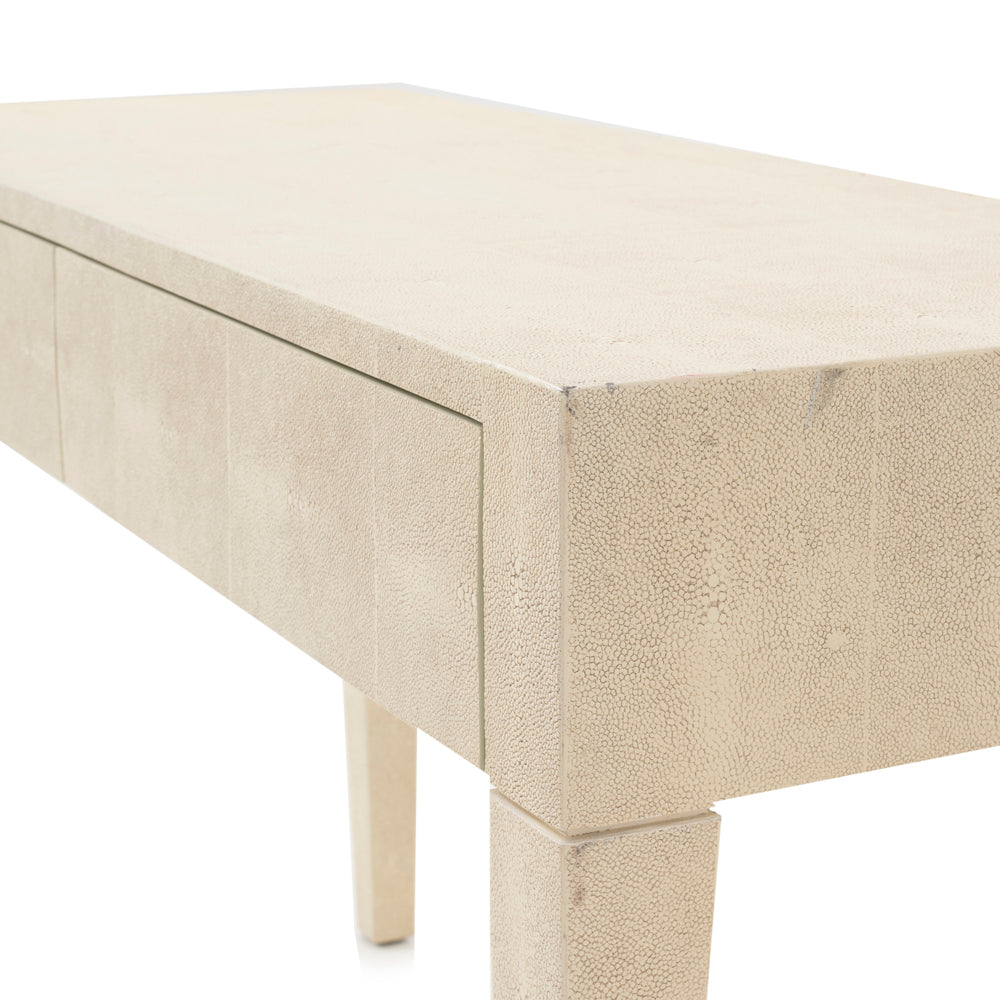 Details: Cream Textured Leather Console Table Dimensions: 31" H x 54" W x 20" D Quantity: 1