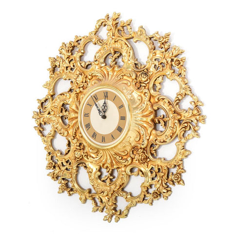 Details: Ornamental designed wall clock Dimensions: 26" H x 26" W x 2.25" D Quantity: 1