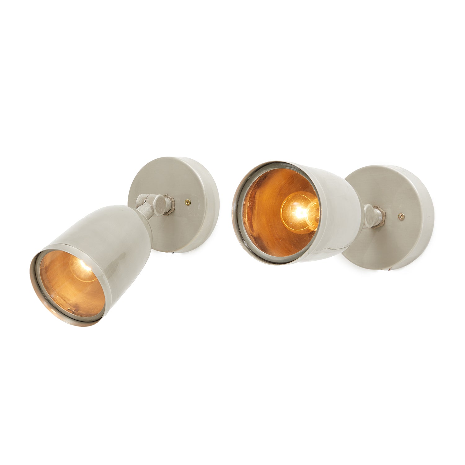 Details: Grey outdoor spotlight with adjustable head Dimensions: 5" H x 5" W x 11" D Quantity: 2