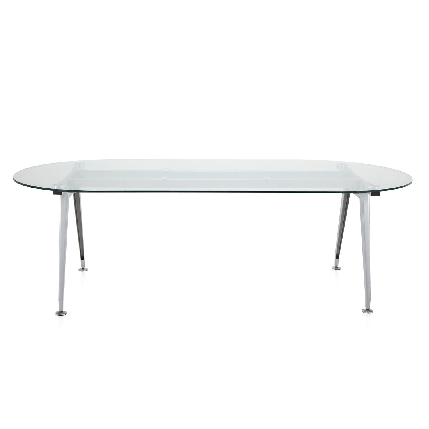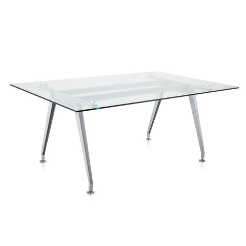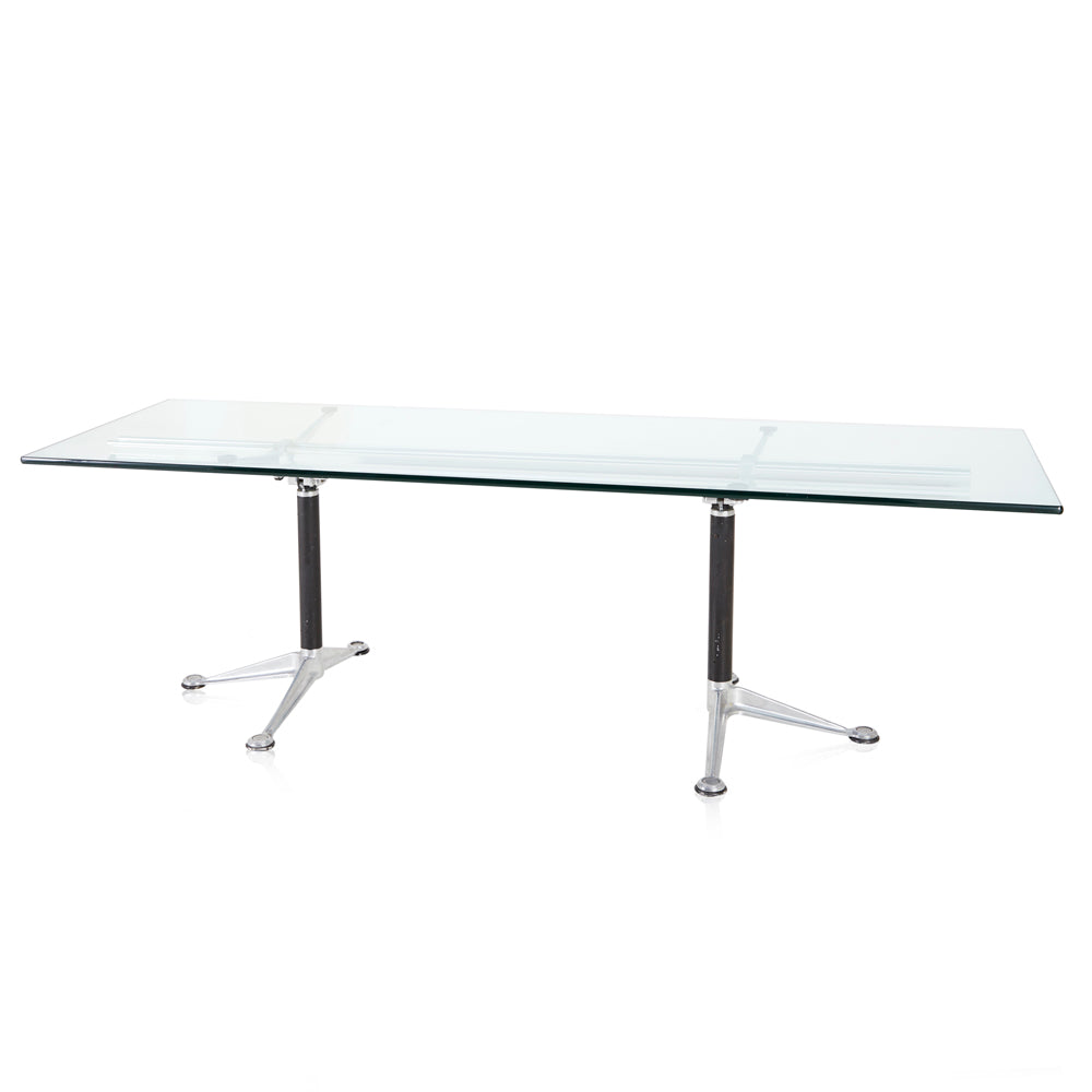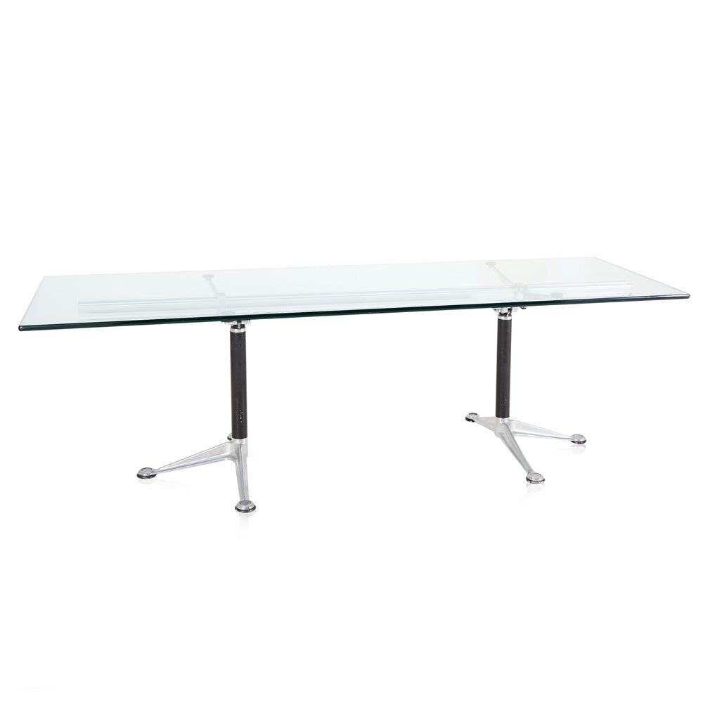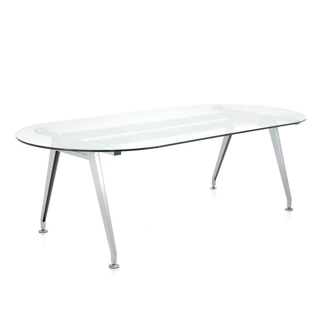 Details: Contemporary conference table with glass top and metal legs Dimensions: 29" H x 45" W x 94" D Quantity: 1