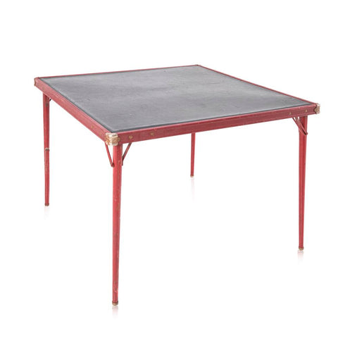 Details: Folding table with light speckled red vinyl top and black metal legs Dimensions: 28" H x 32" W x 32" D Quantity: 1
