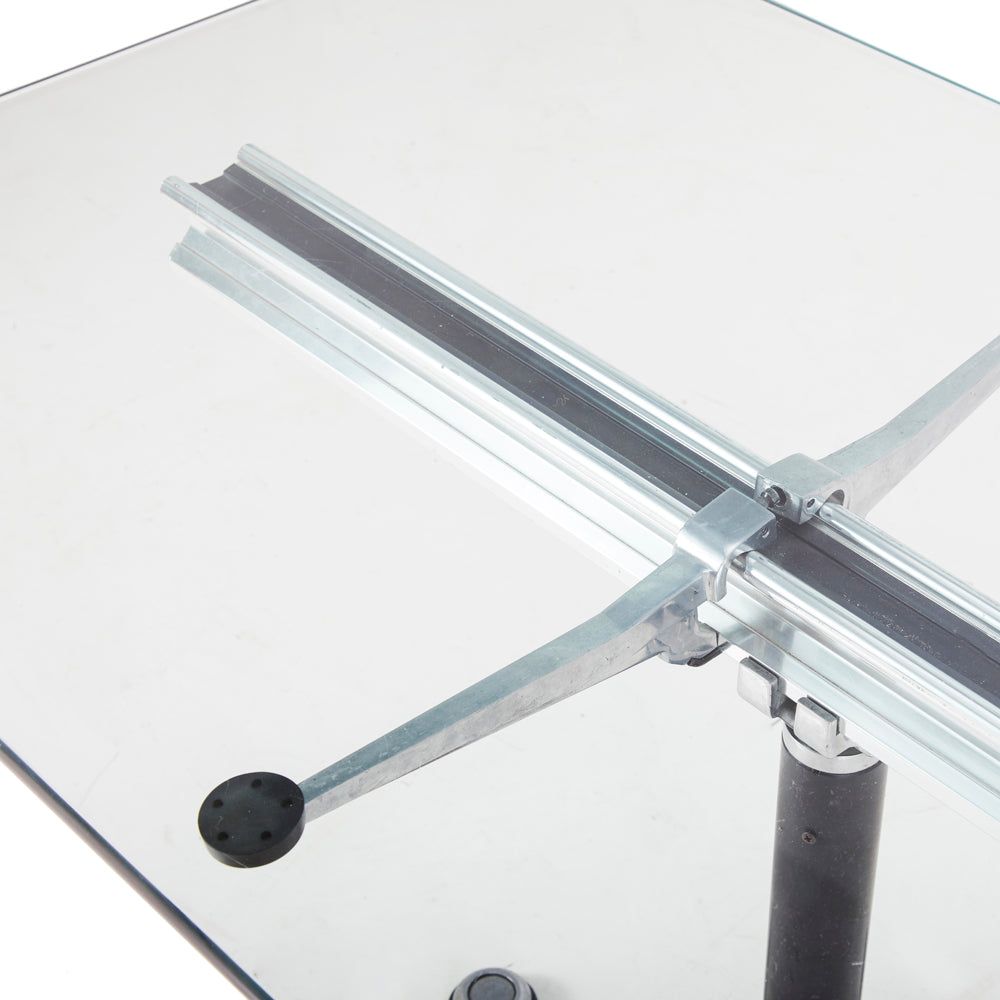Details: Large clear top office table with metal three toe feet Dimensions: 28.5" H x 30" W x 88" D Quantity: 1