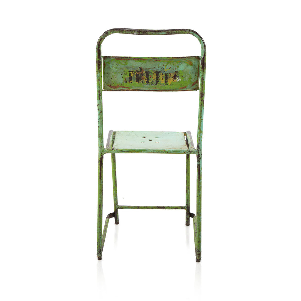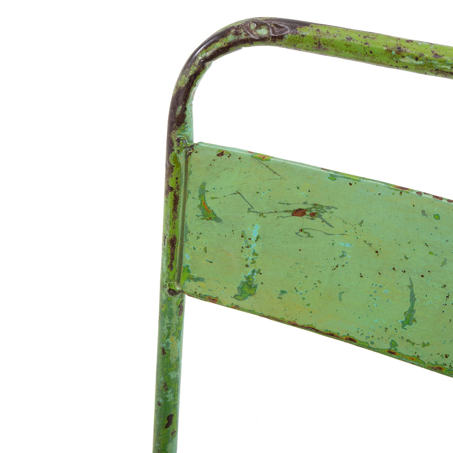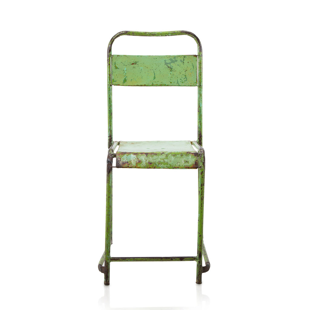 Details: Weathered green chair with chipped paint Dimensions: 32" H x 15" W x 16" D Quantity: 1