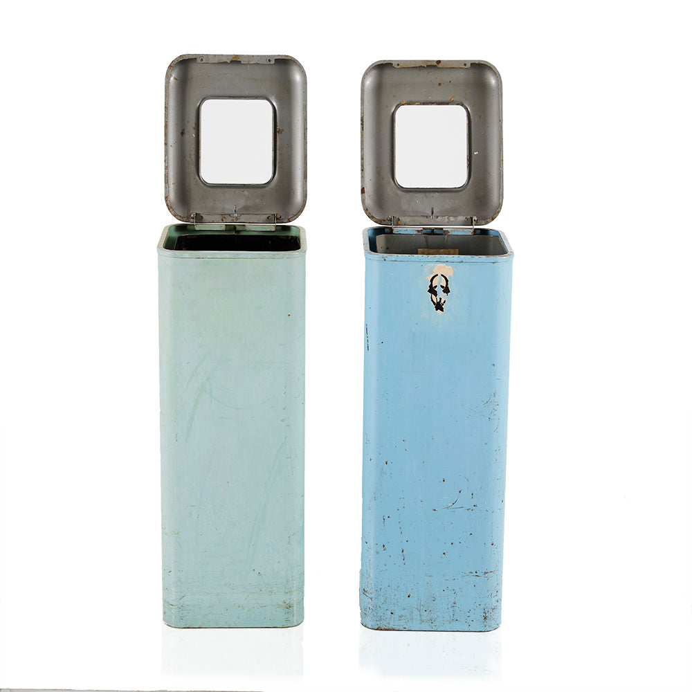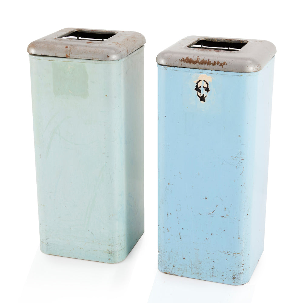 Details: Blue and Green metal trash cans - price is EACH - please specify which one