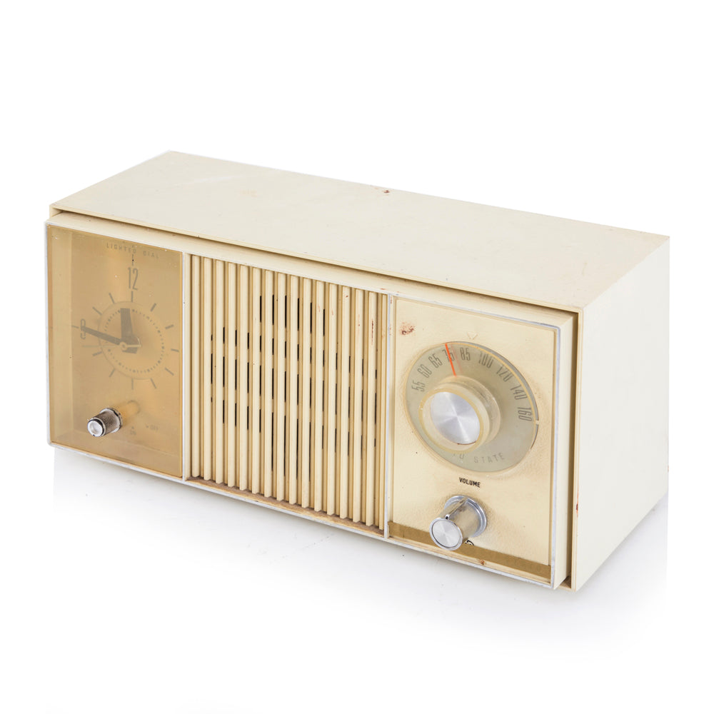 Details: 1984 Portable White AC/DC 4 Way TV with black frame and white body Dimensions: 6.25" H x 6" W x 10.75" D Quantity: 1