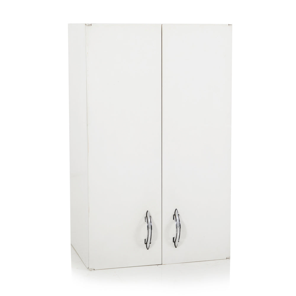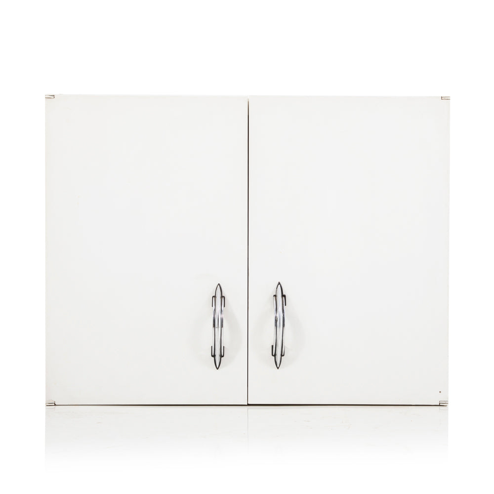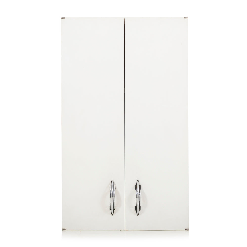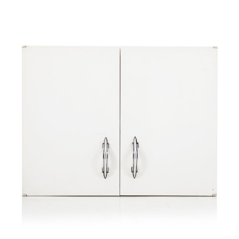 Details: White tall wall mount kitchen cabinet with chrome handles Dimensions: 30" H x 18" W x 13" D Quantity: 1