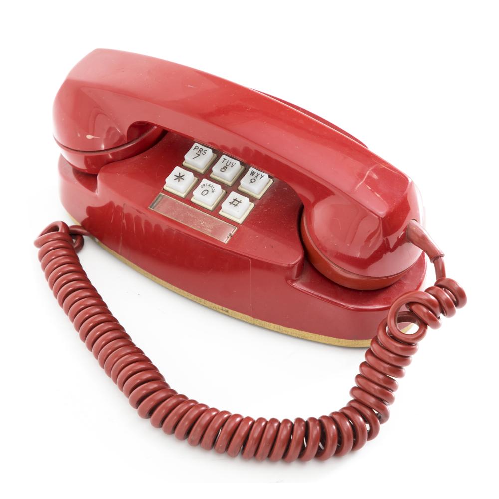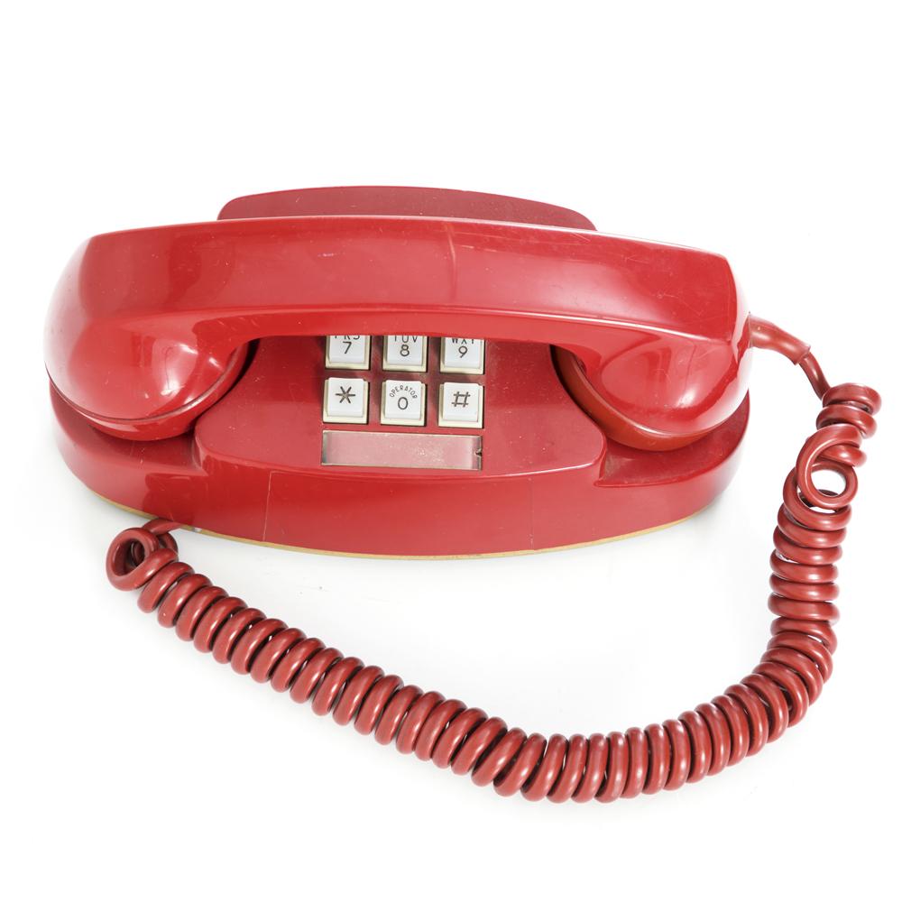 Details: Red plastic candlestick phone with gold accent Dimensions: 12" H x 5.75" W x 5.75" D Quantity: 1