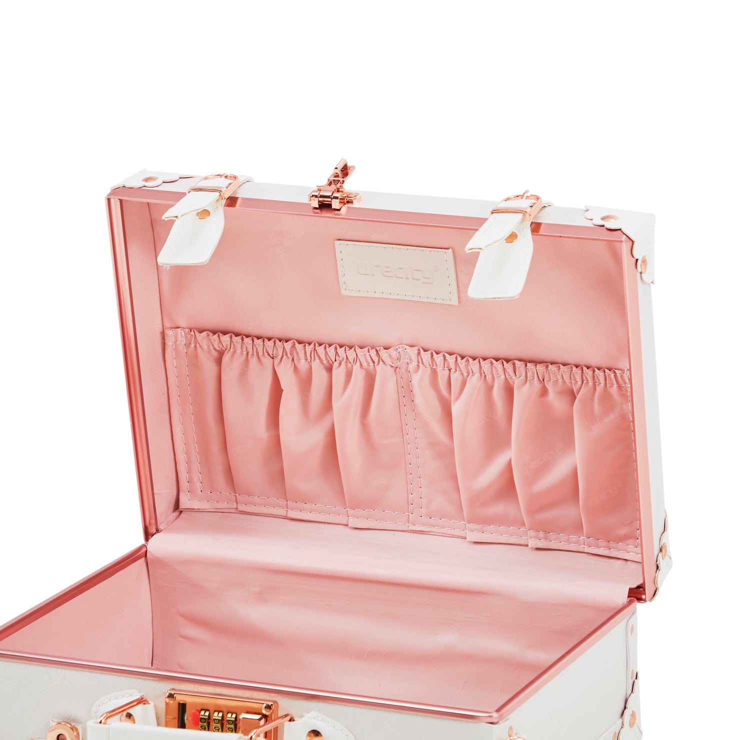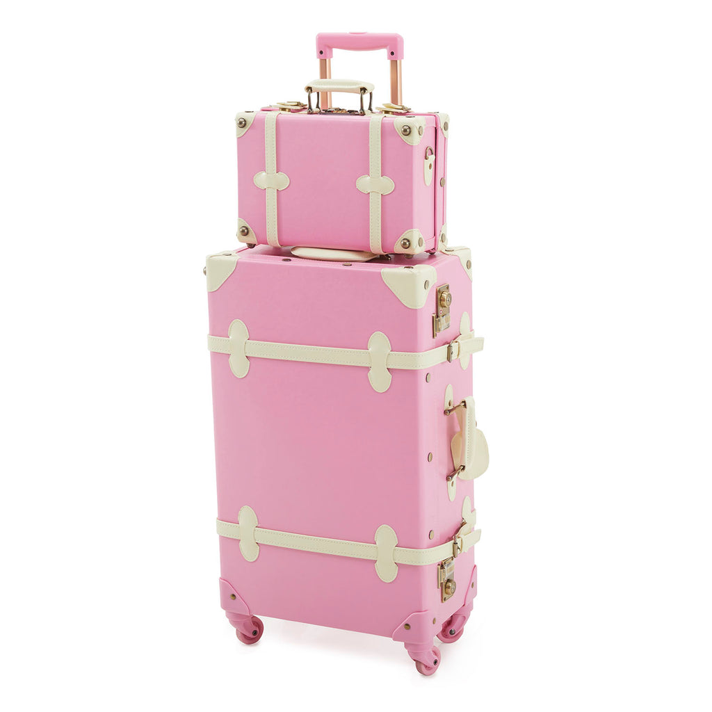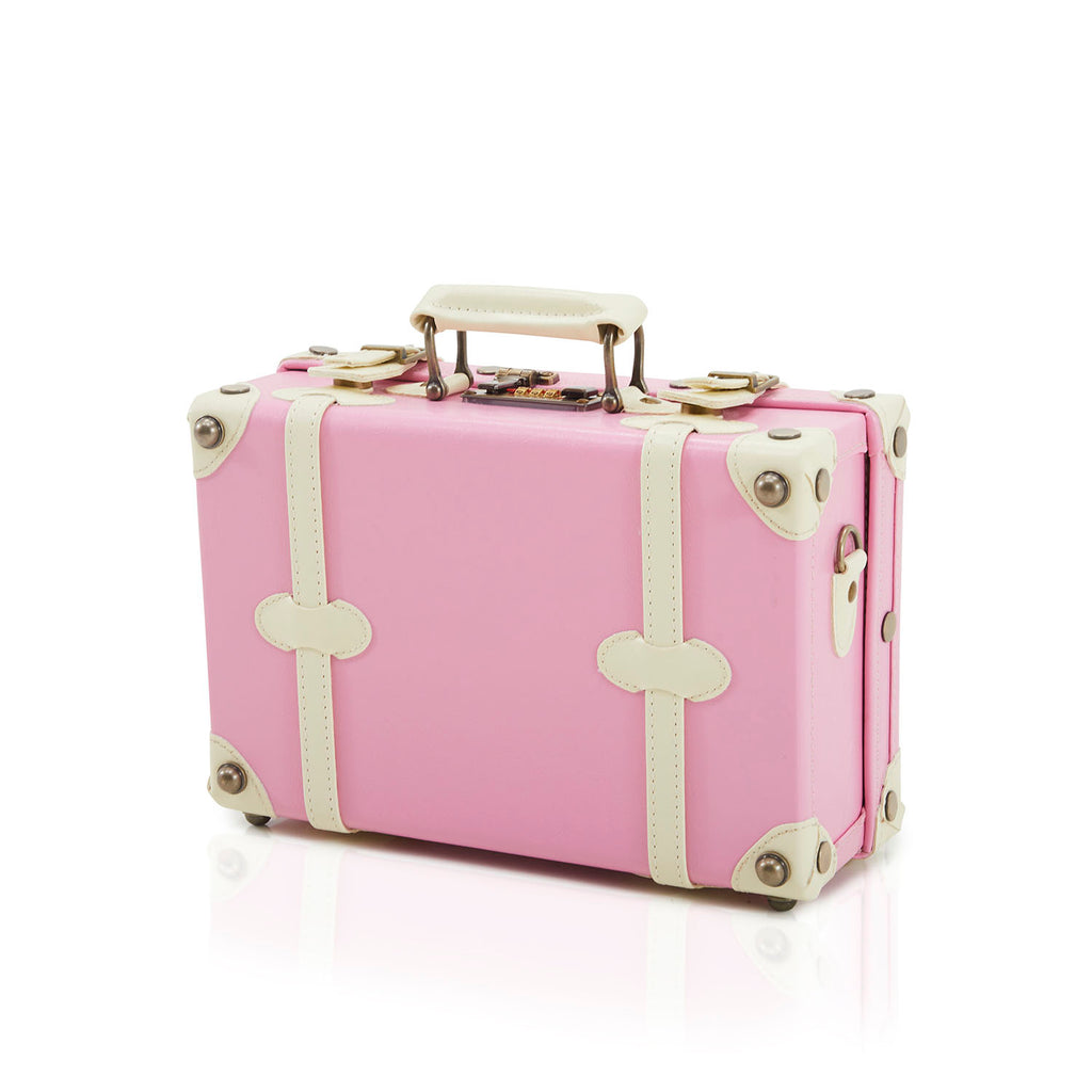 Details: Small White and Pink Modern Cosmetic Suitcase (matching larger suitcase also avail separately) Dimensions: 10" H x 13" W