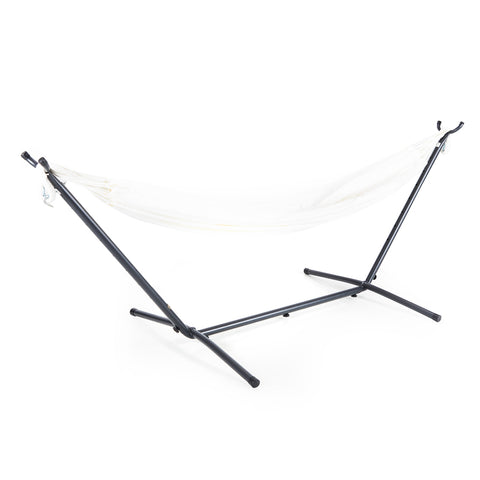Details: White hammock with black frame Dimensions: 40" H x 108" W x 40" D