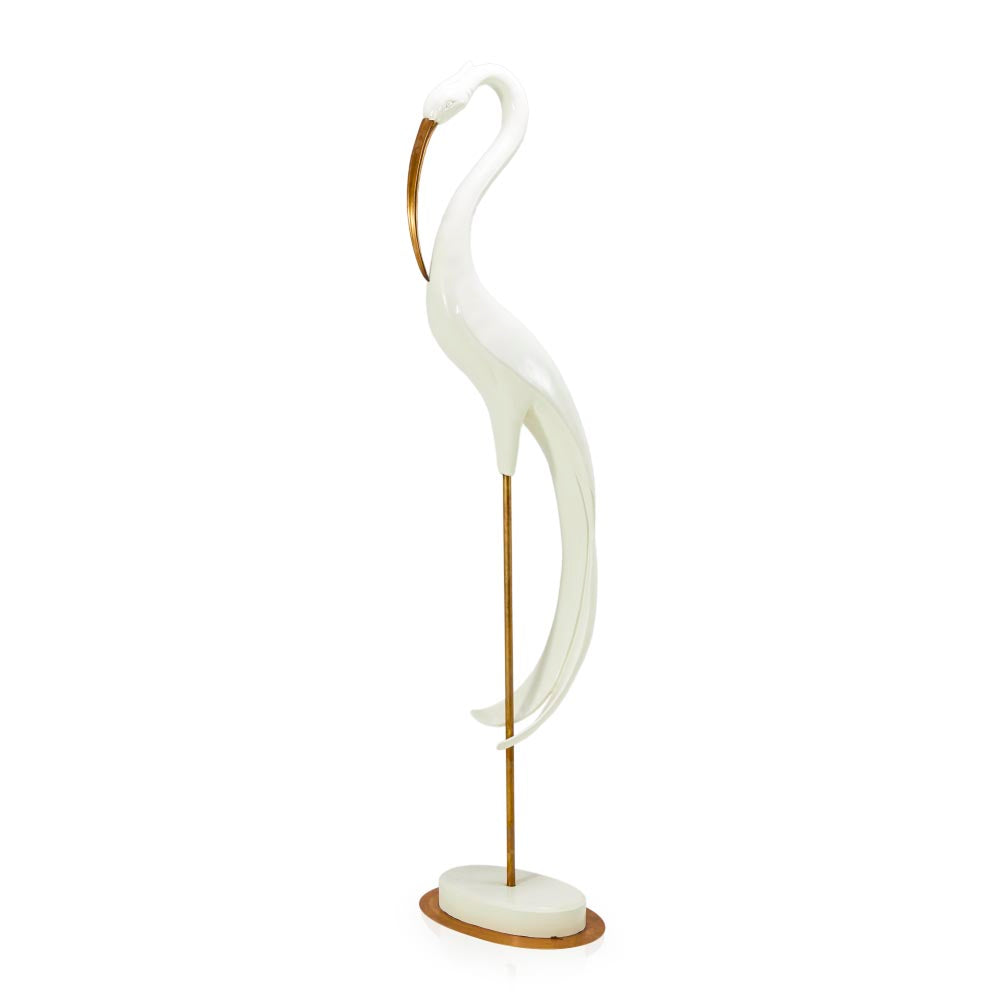 Details: Giant White and Gold Crane Sculpture Dimensions: 77" H x 19" W x 13" D Quantity: 1