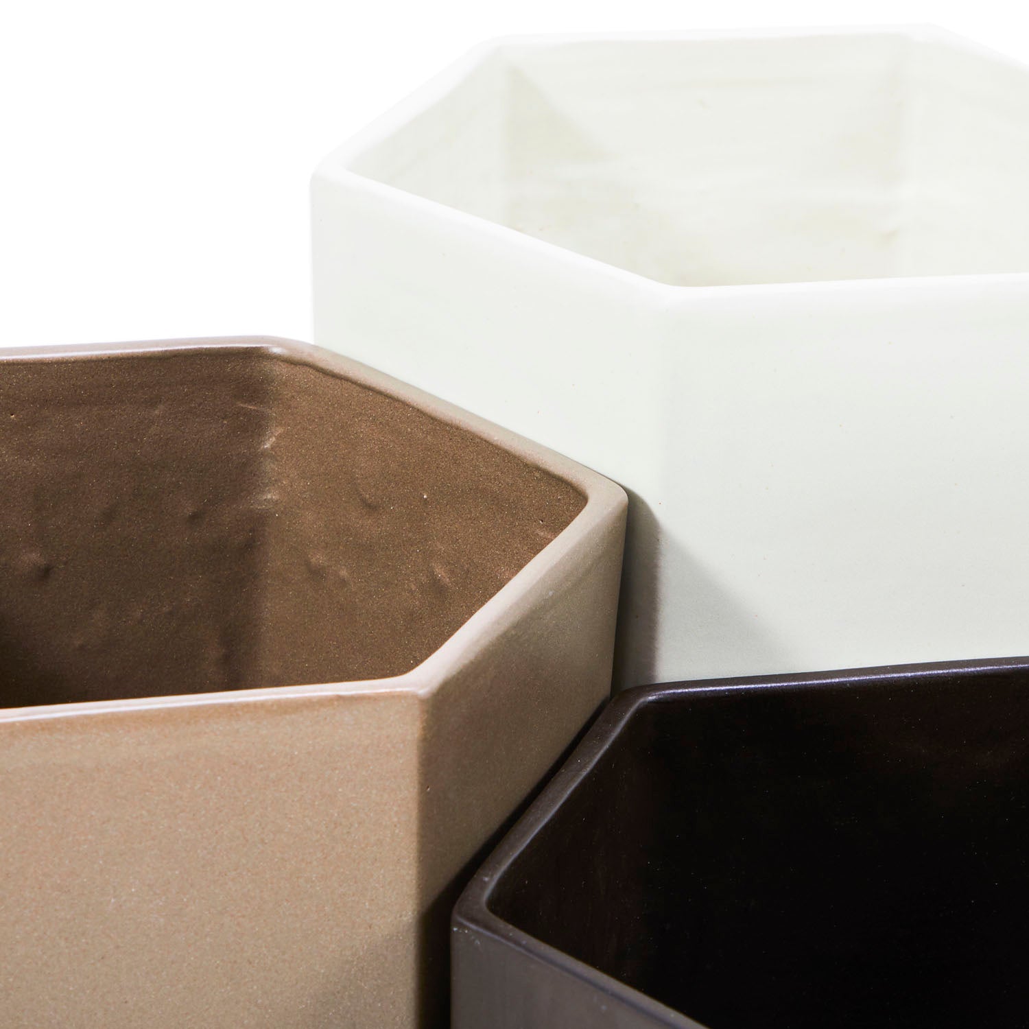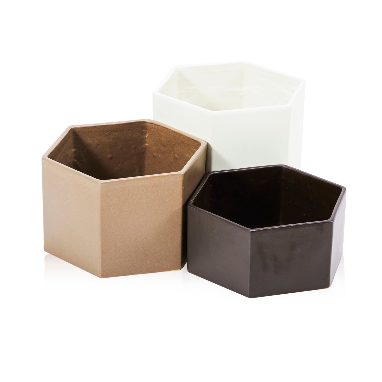 Details: Hexagon planters, come in various colors and sizes Dimensions: 9" H x 9" W x 9" D Quantity: 10