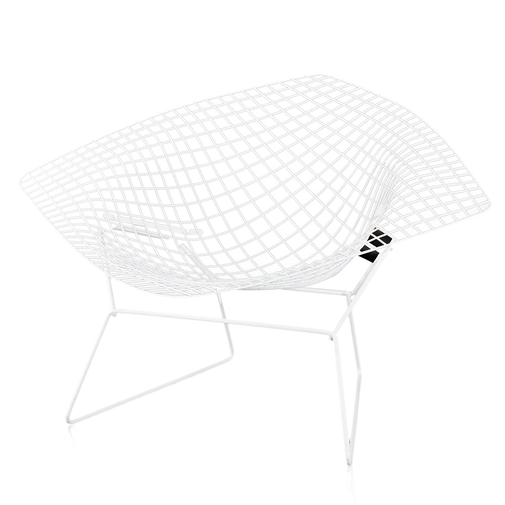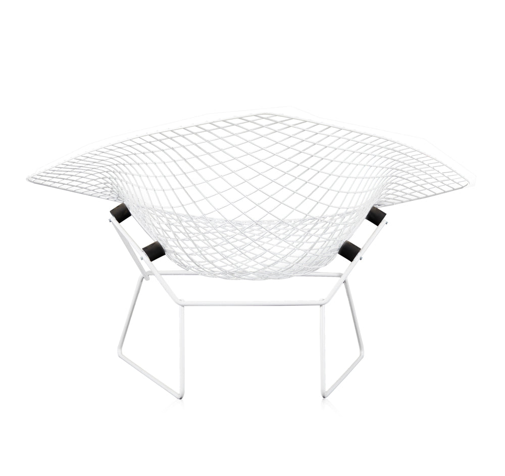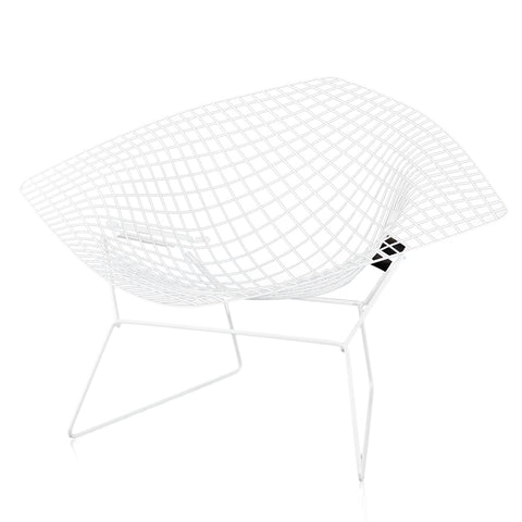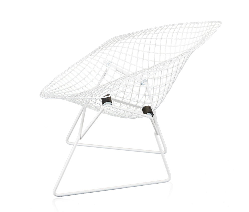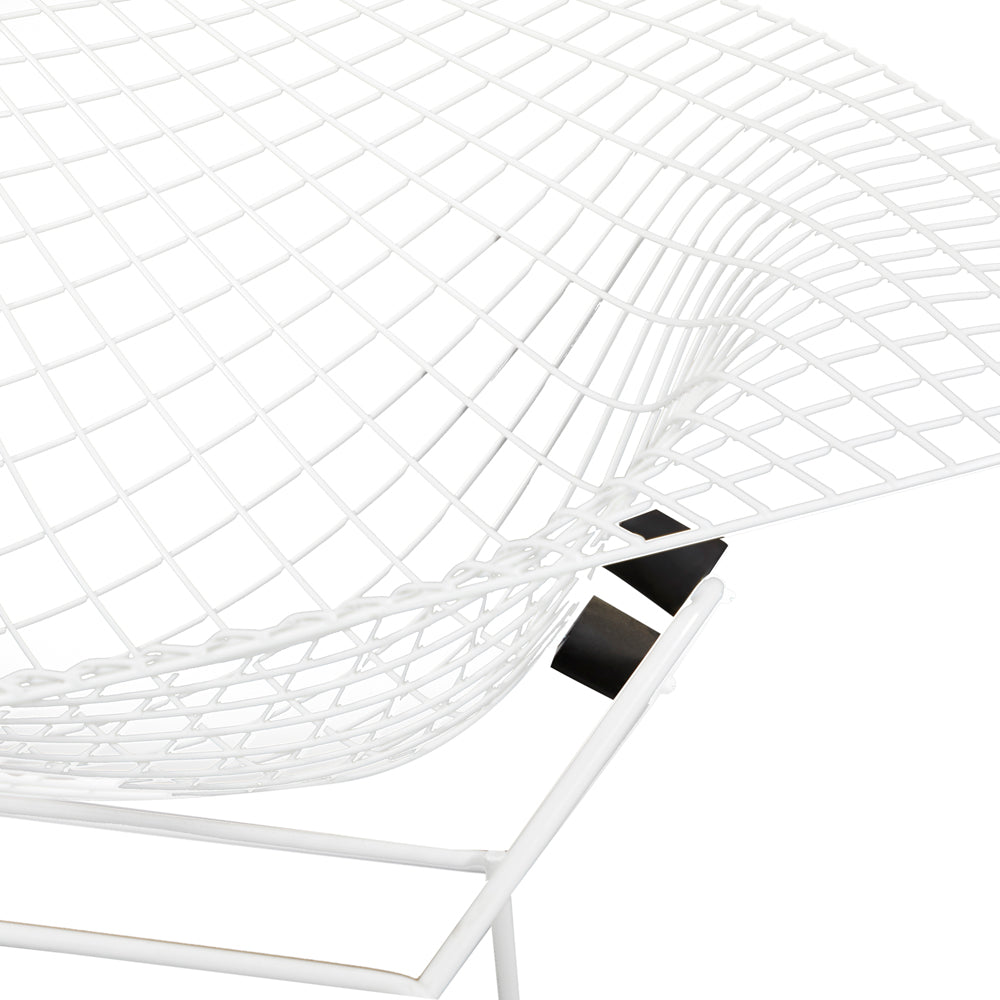 Details: White Bertoia wire mesh metal outdoor chair, extra wide arms Dimensions: 27" H x 44" W x 35" D