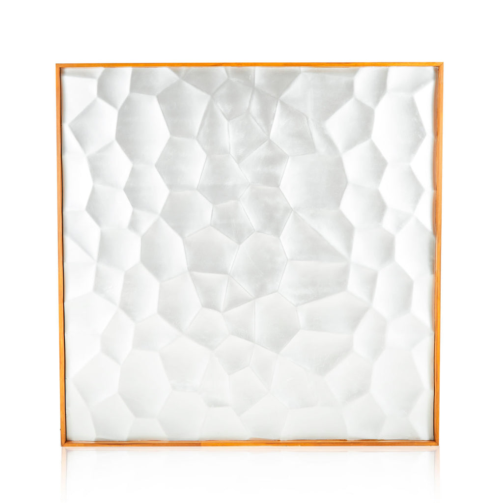 Details: Square room divider with a white geometric pattern and light wood frame Dimensions: 72" H x 72" W x 7.5" D Quantity: 1